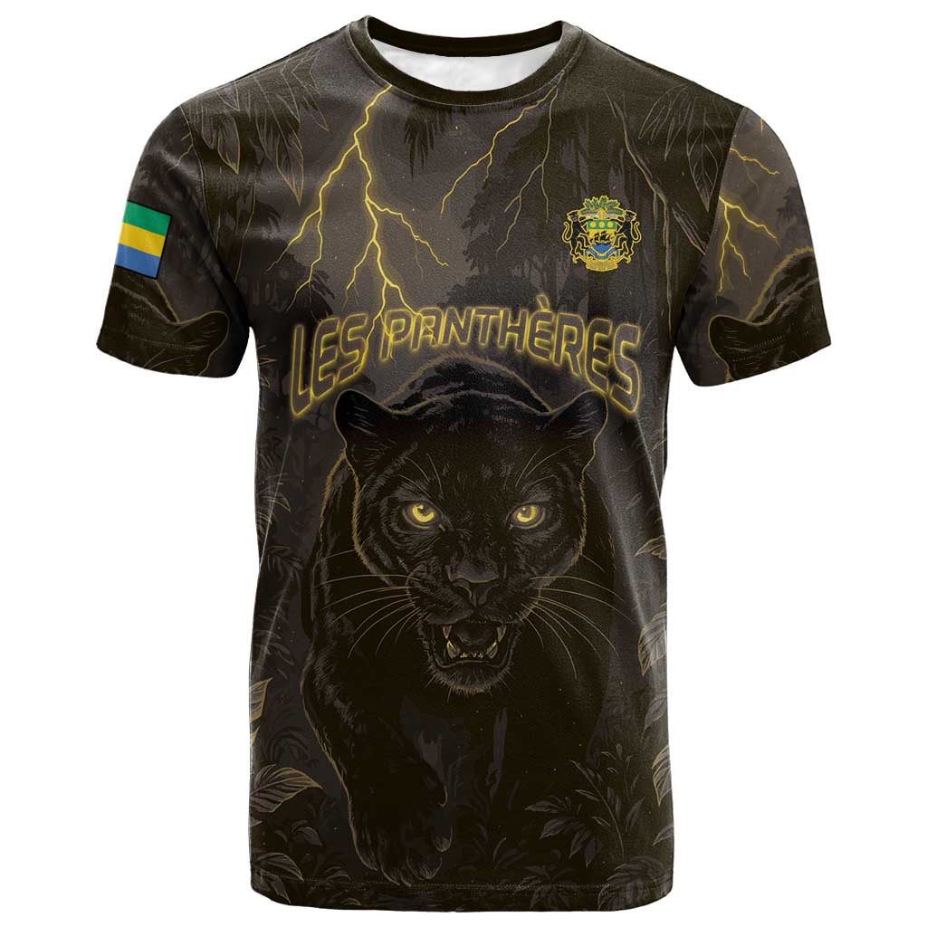Custom Gabon Football T shirt Black Panther Thunder