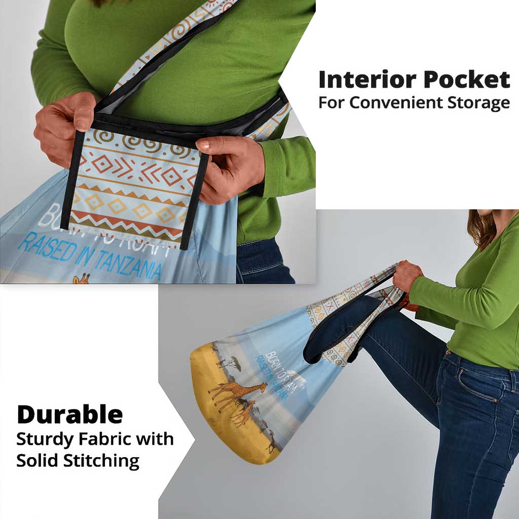 Tanzania Safari Giraffe Grocery Bag - Tribal Patterns and Mount Kilimanjaro Scene