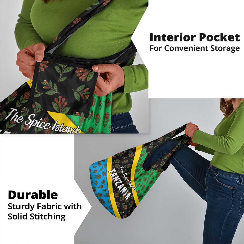 Tanzania Spice Island Grocery Bag with Clove Leaf Pattern and National Flag Colors