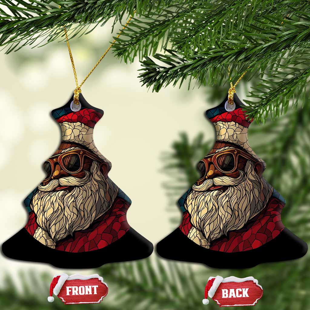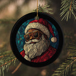 Cool African American Santa Melanin Claus Stained Glass Effect Printed Christmas Ornament Festive Xmas Tree Decor