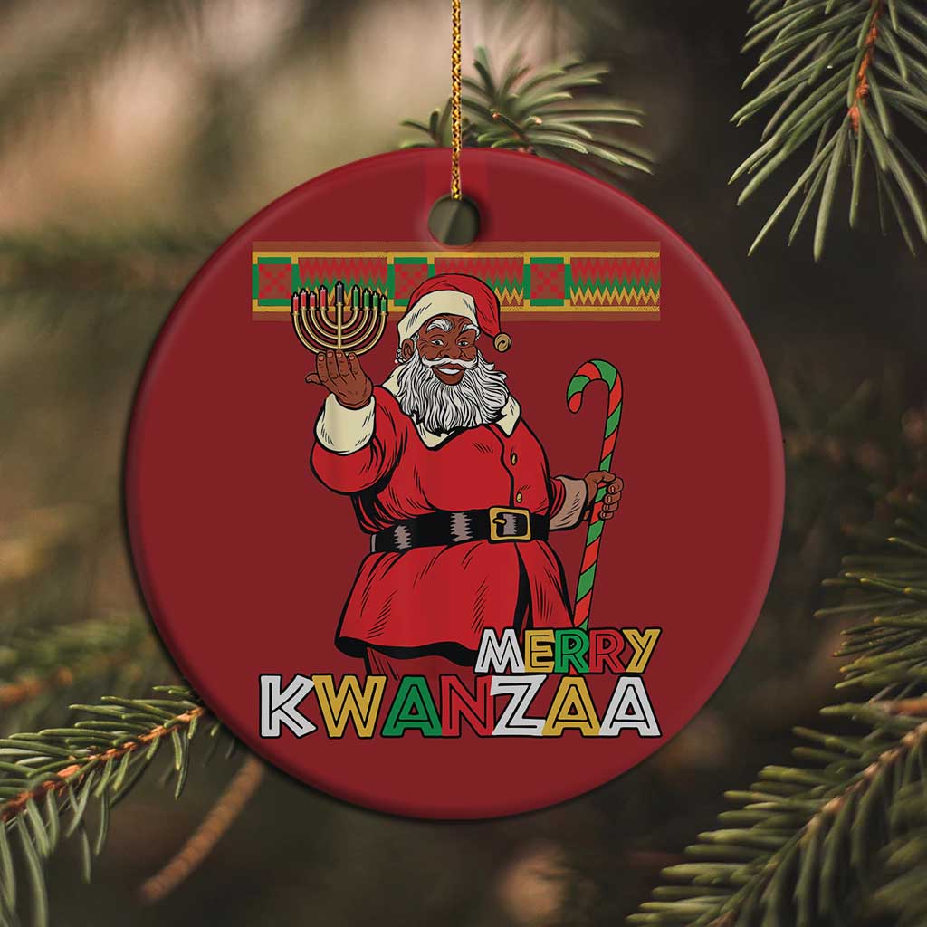 Funny Merry Kwanzaa Xmas Christmas Ornament African American Holiday Black Santa Kinara Candles