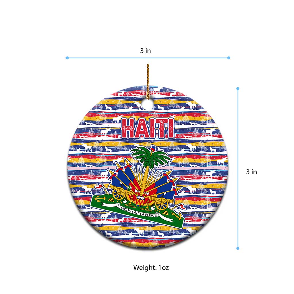 Haiti Christmas Ceramic Ornament Blue Red Yellow Xmas Santa Sleigh and Coat of Arms