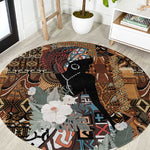 Beautiful Black Woman Round Carpet African Tribal Pattern