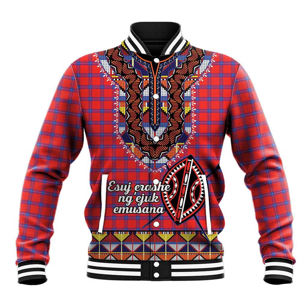 Afro Kenya Maasai Shuka Personalized Baseball Jacket Maasai Shield Mix Dashiki