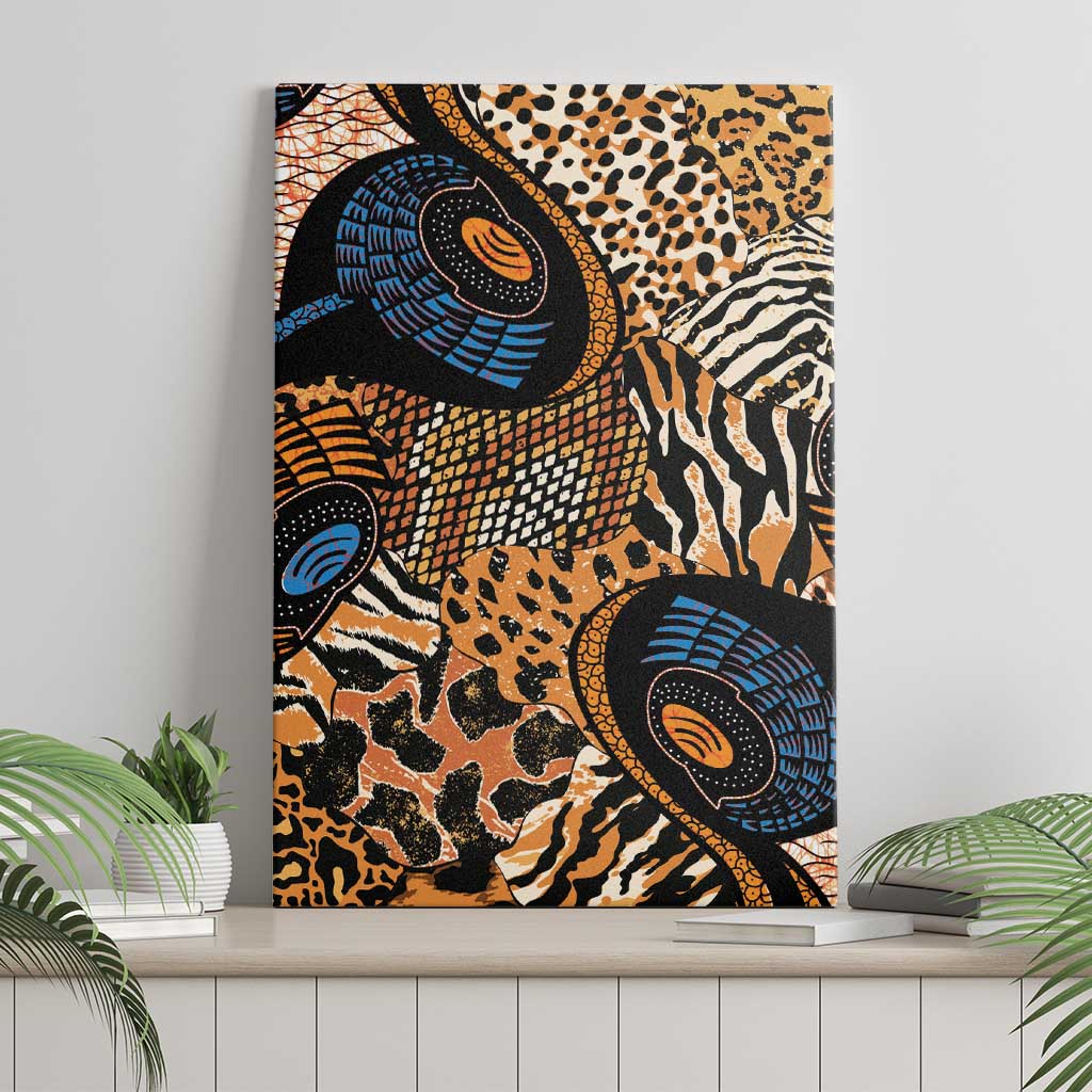 African Ankara Motifs Mixed Animal Skins Canvas Wall Art