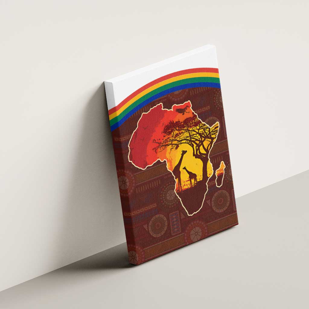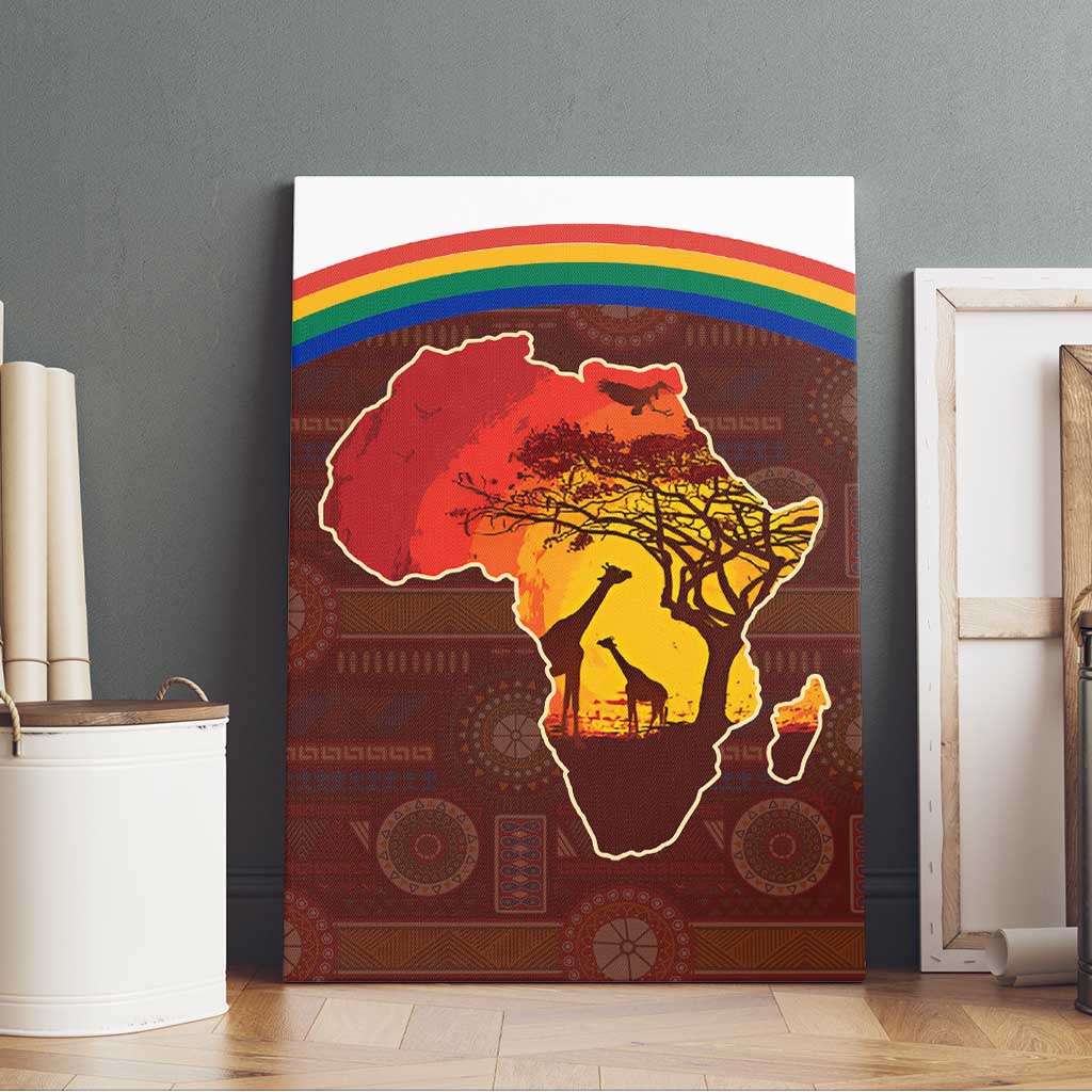 African Sunset Canvas Wall Art Tribal Pattern Continent Silhouette - Rainbow Arc Safari Scene