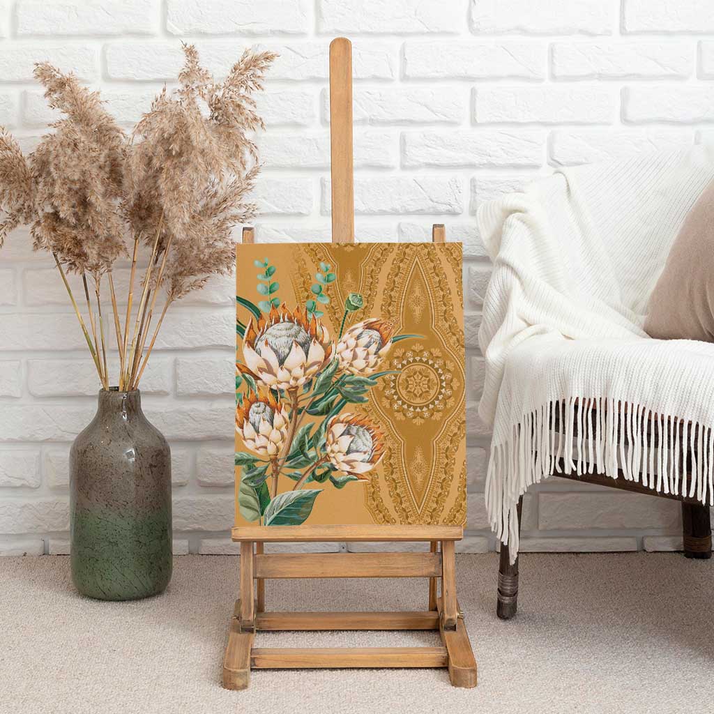 Afro King Proteas Dashiki Motif Canvas Wall Art Gold Style