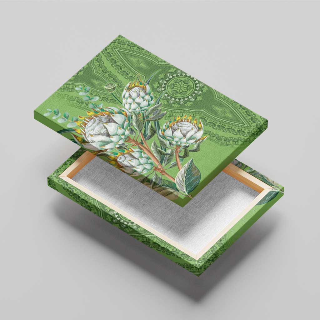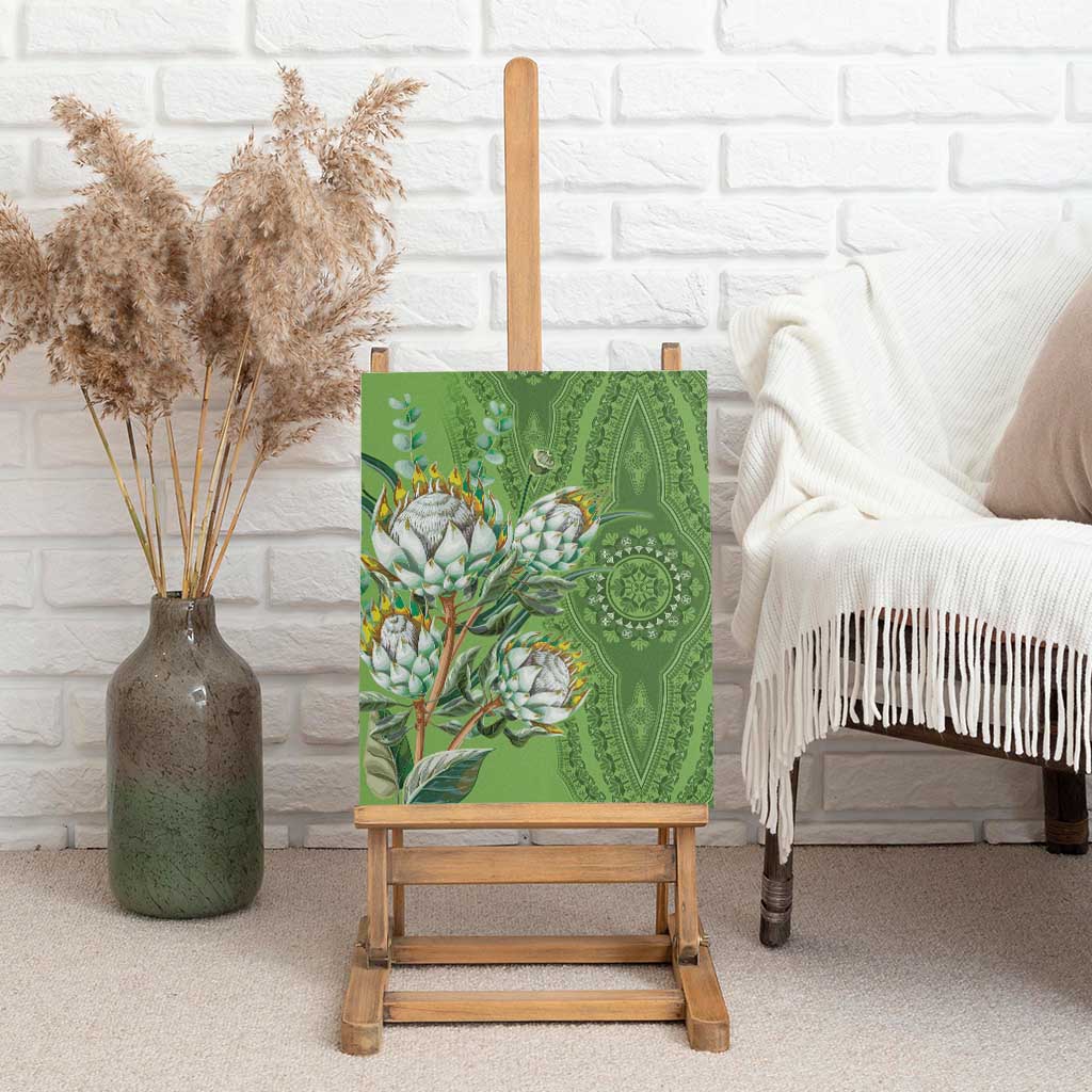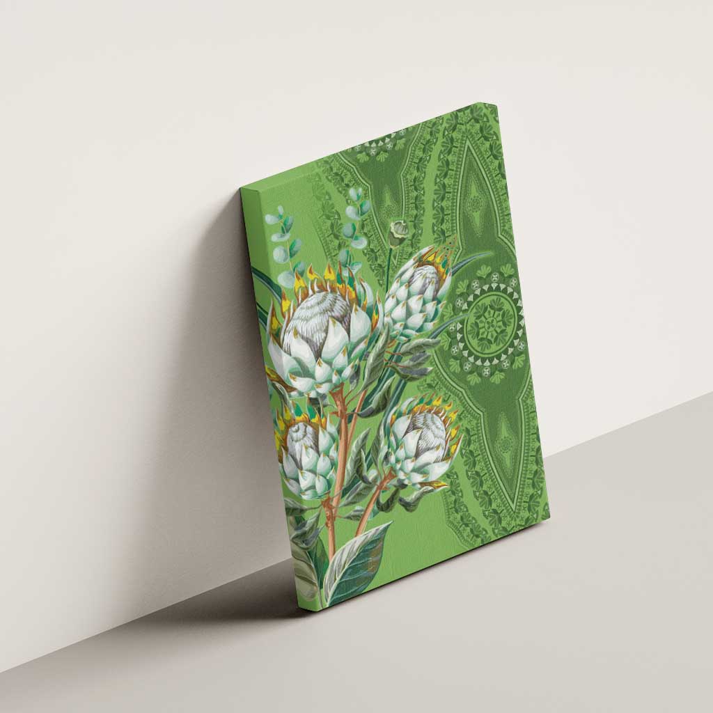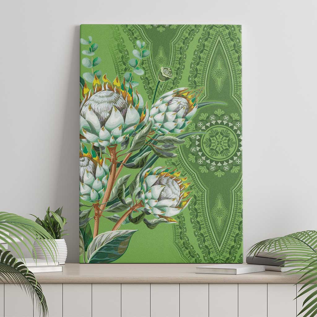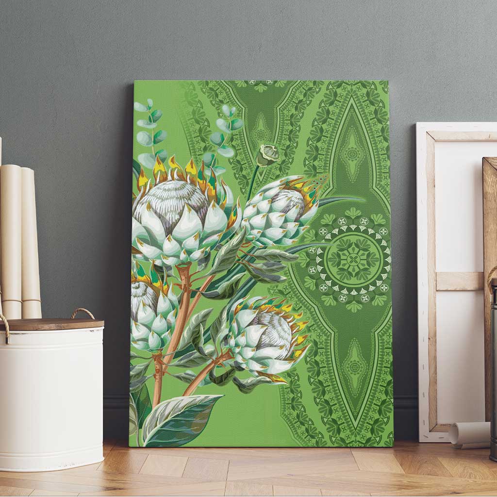 Afro King Proteas Dashiki Motif Canvas Wall Art Green Style