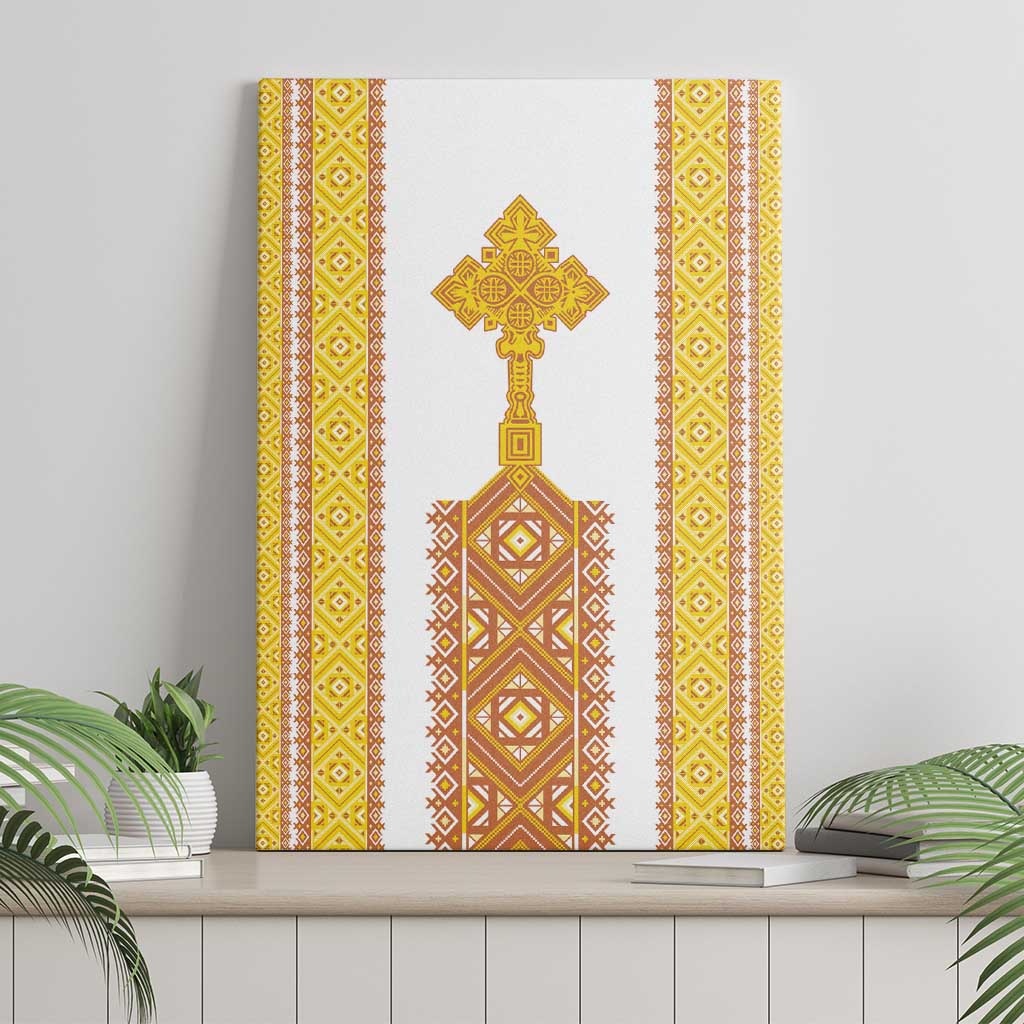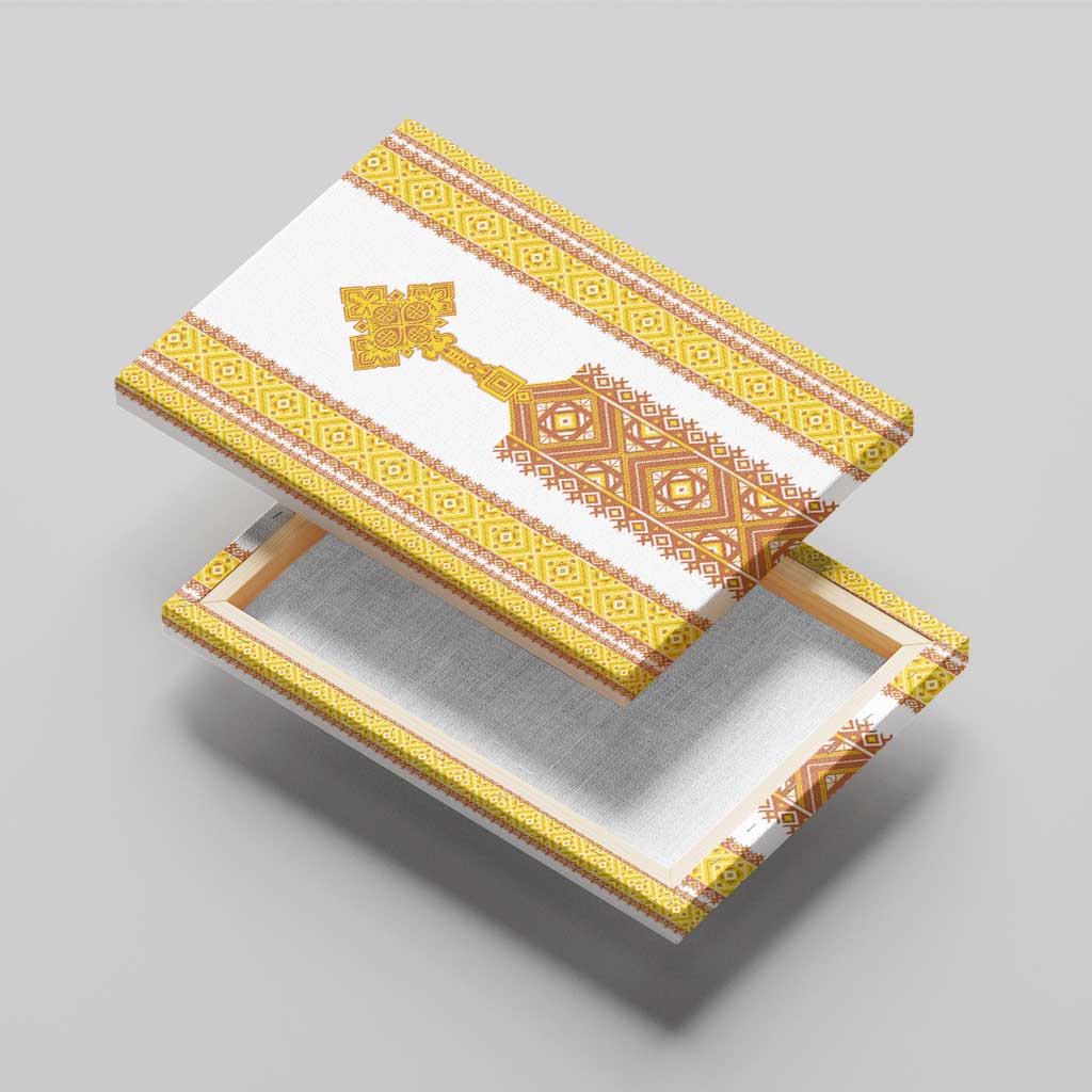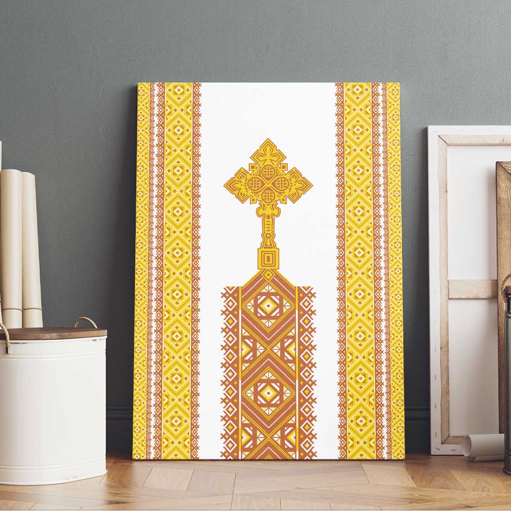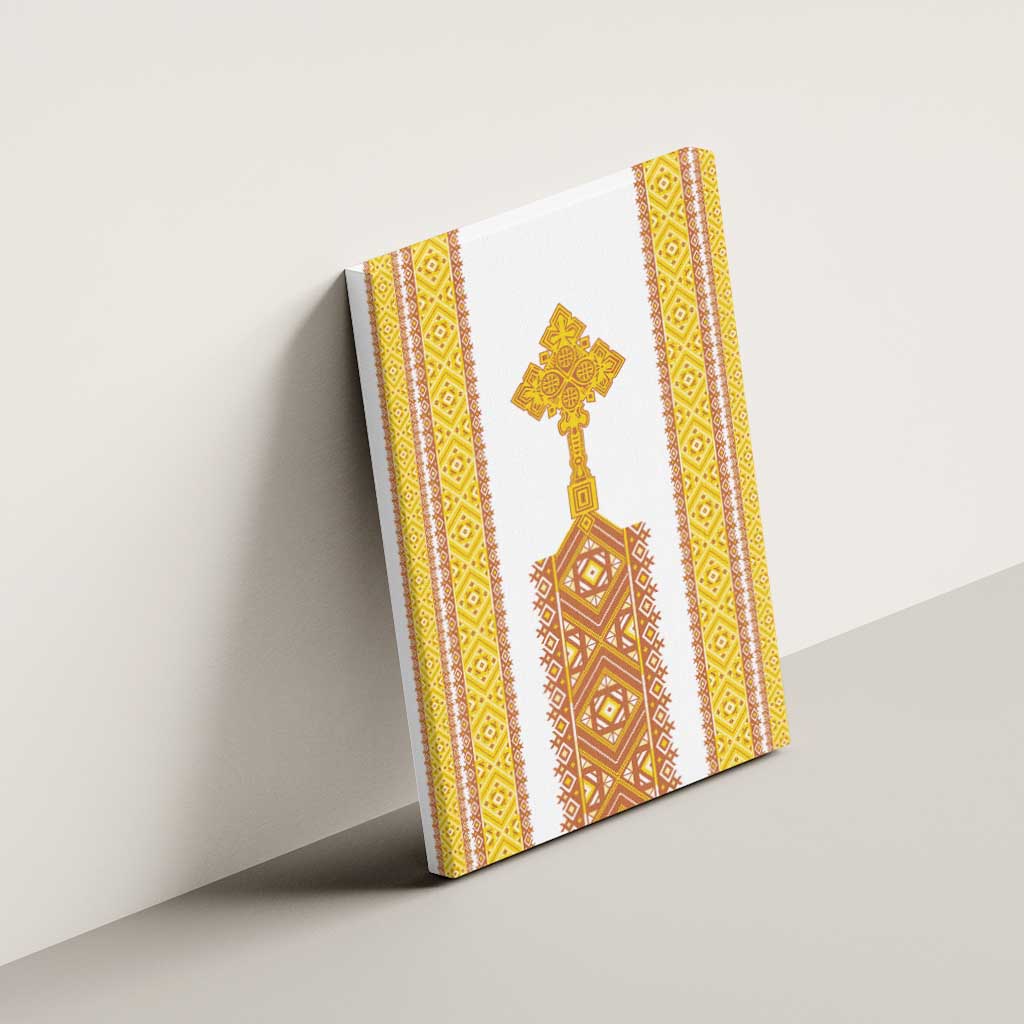 Habesha Motifs Ethiopia Canvas Wall Art Tilet White Gold
