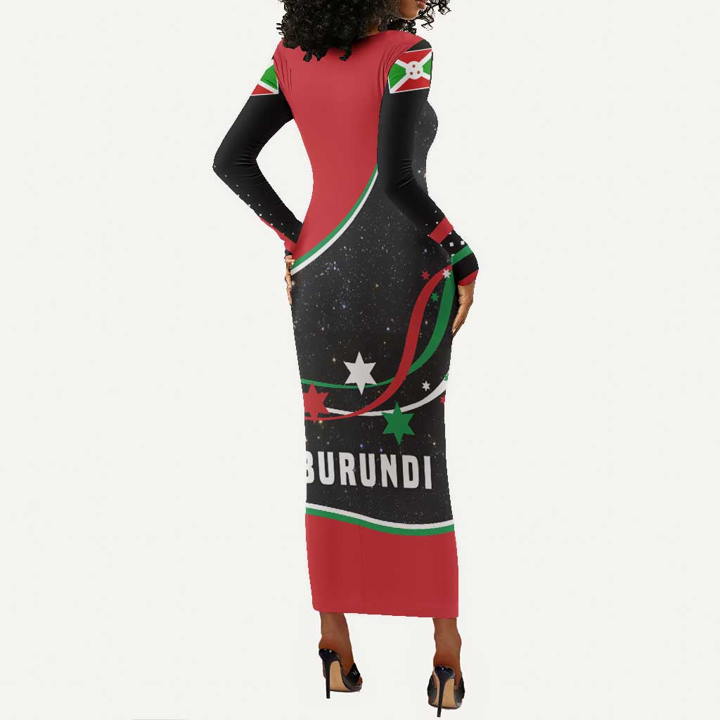 Burundi Long Sleeve Bodycon Dress with Athletics Runners Black Red Green Flag Spirit