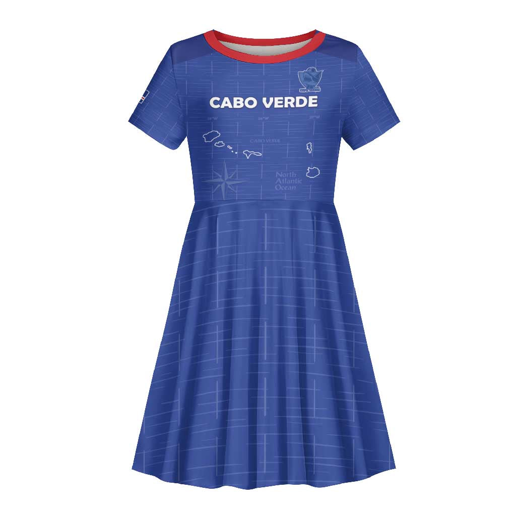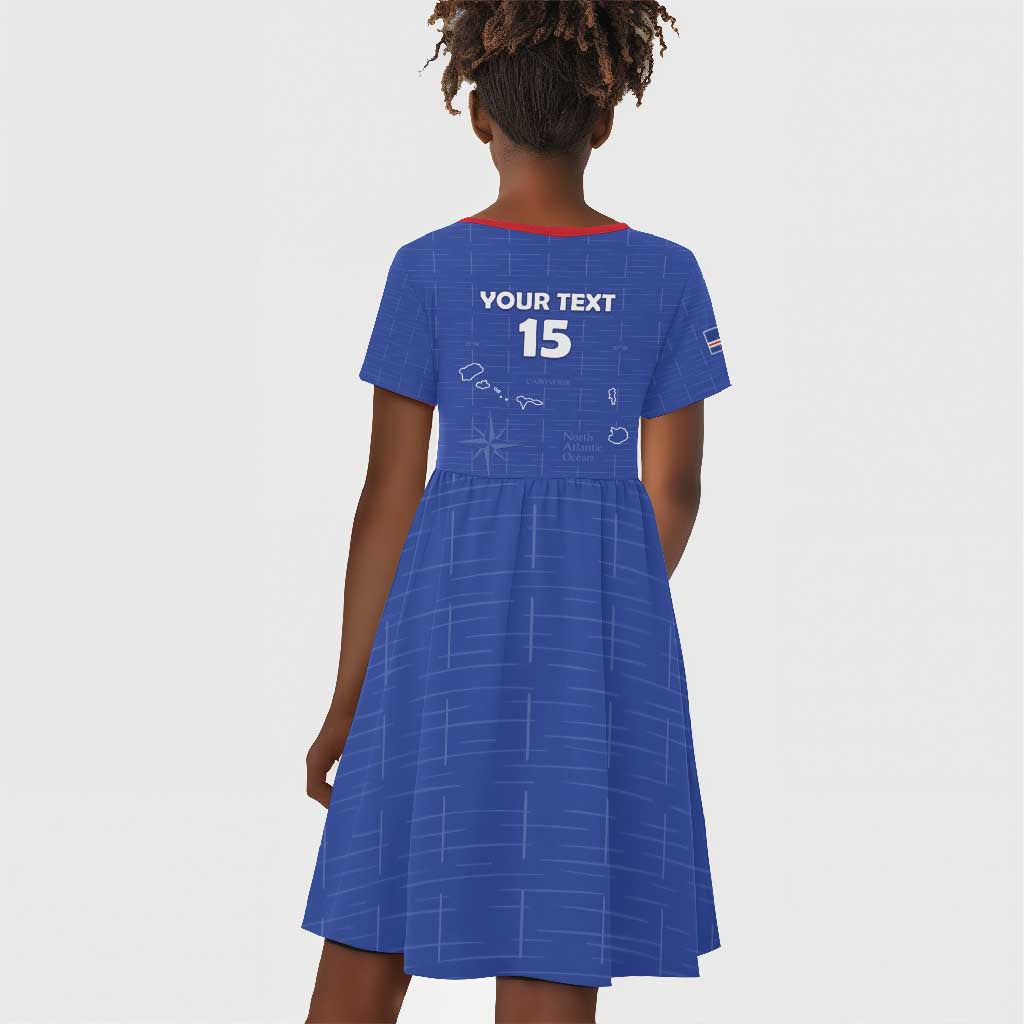 Custom Cabo Verde Football Kid Short Sleeve Dress Go Tubaroes Azuis Go - Blue