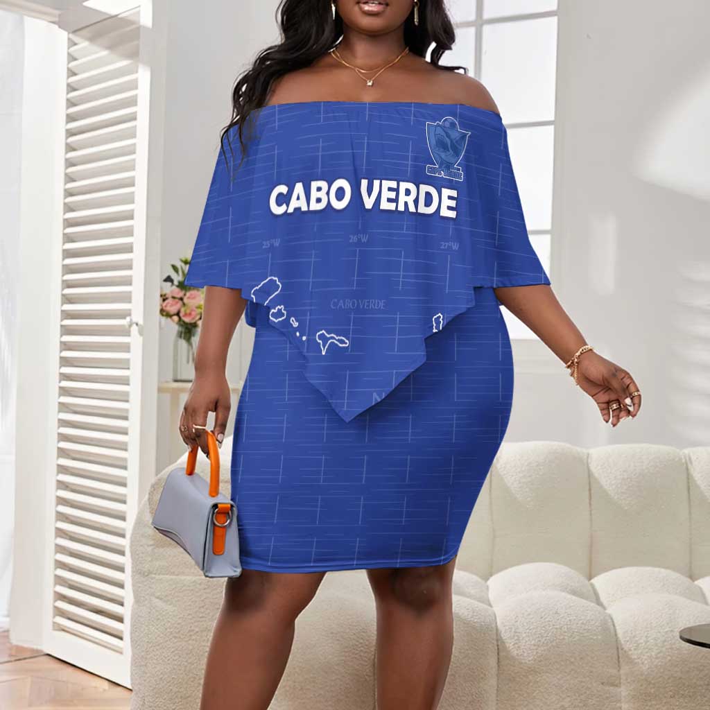 Custom Cabo Verde Football Off The Shoulder Long Sleeve Dress Go Tubaroes Azuis Go - Blue