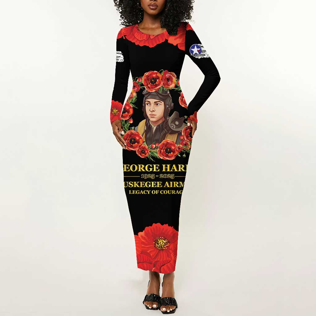 George Hardy Tuskegee Red Tail Pilots Long Sleeve Bodycon Dress Legacy of Courage
