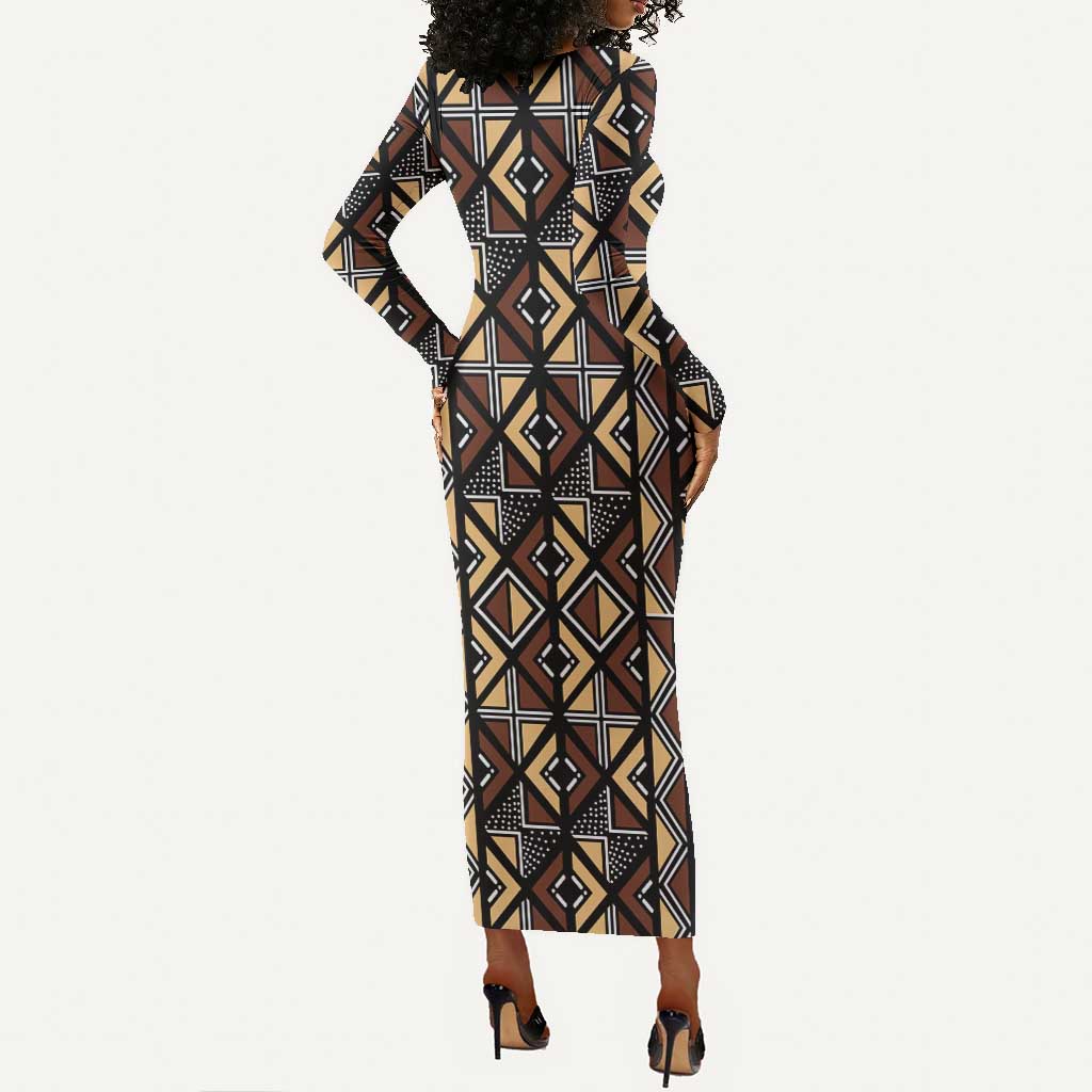 Mali Mud Cloth Legacy Long Sleeve Bodycon Dress African Tribal Pattern