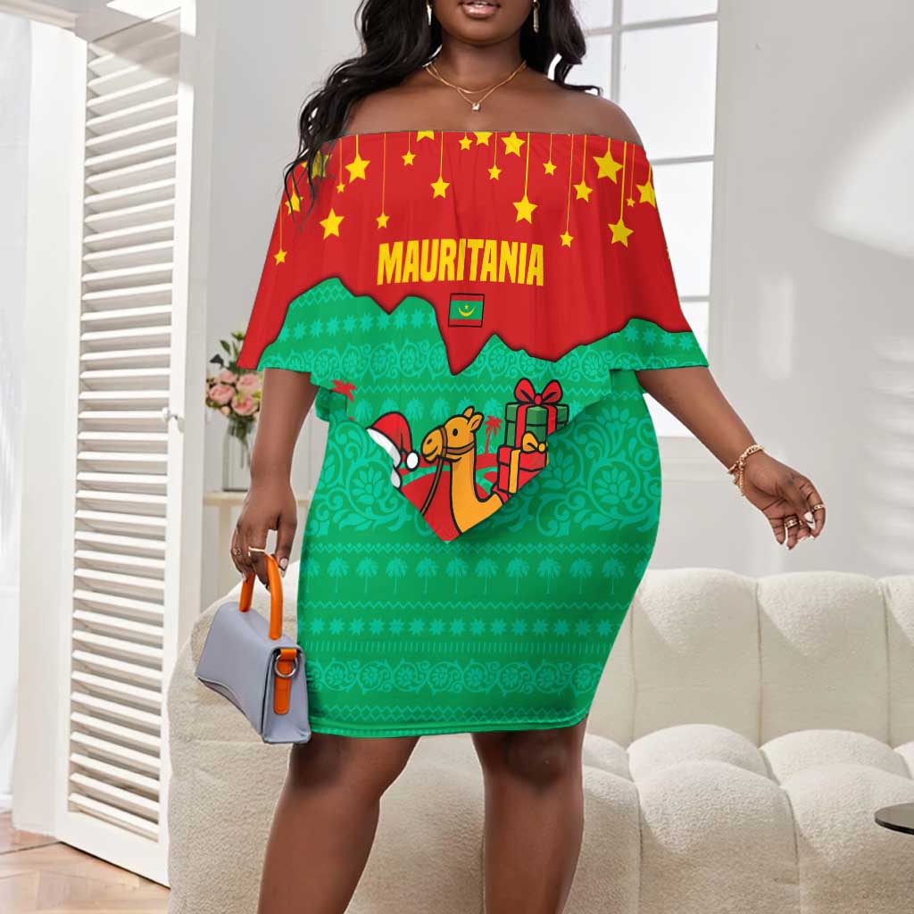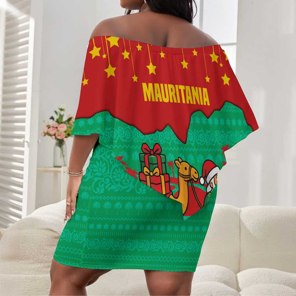 Mauritania Christmas Off Shoulder Short Dress Santa Claus Camel Gift Boxes Starry Sky and Desert