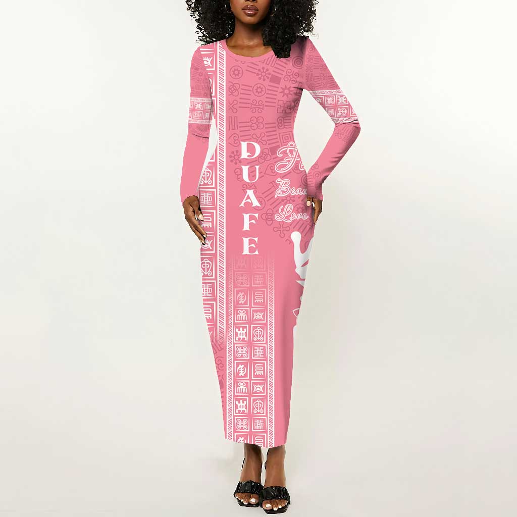 Personalized Adinkra Afro-Akan Culture Long Sleeve Bodycon Dress Duafe - Women's Day