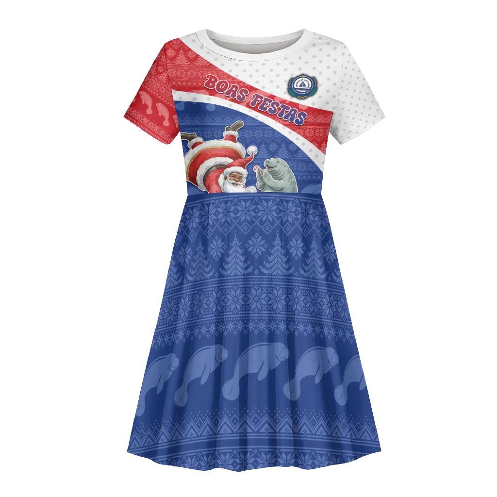 Personalized Cape Verde Christmas Kid Short Sleeve Dress Black Santa Clause With The Manatee