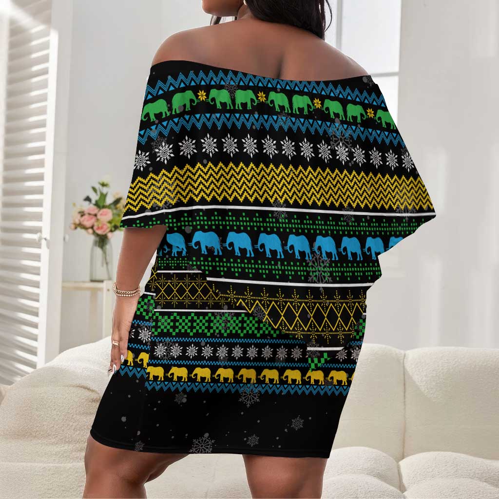 Tanzania Christmas Off Shoulder Short Dress African Santa Riding Elephant Snowflakes