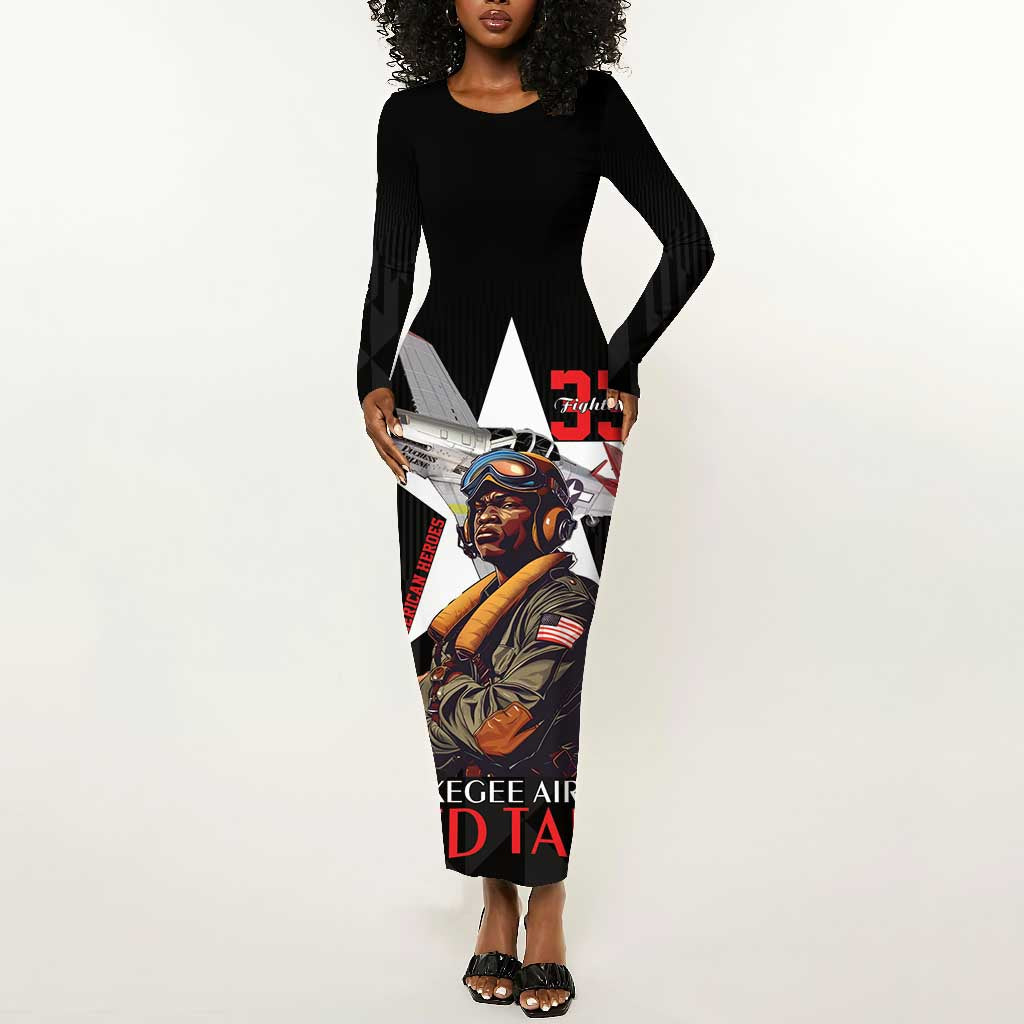 Tuskegee Airmen Red Tails Legacy Long Sleeve Bodycon Dress African American Pilots - Black