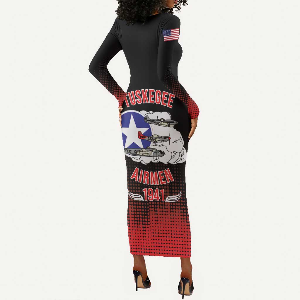 Tuskegee Red Tails Airmen WWII Tribute Long Sleeve Bodycon Dress 332nd Fighter Group - Black