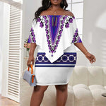 Africa Off Shoulder Short Dress African Dashiki Royal Purple Version