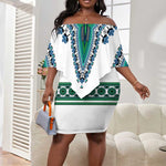 Africa Off Shoulder Short Dress African Dashiki Royal Turquoise Version