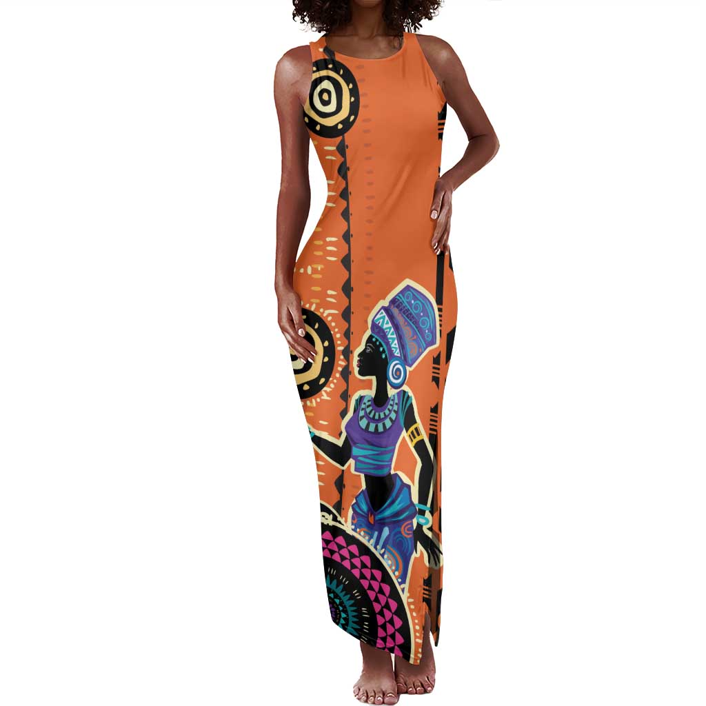 African Woman In Ethnic Dress Tank Maxi Dress Ethnic Geometric Patterns