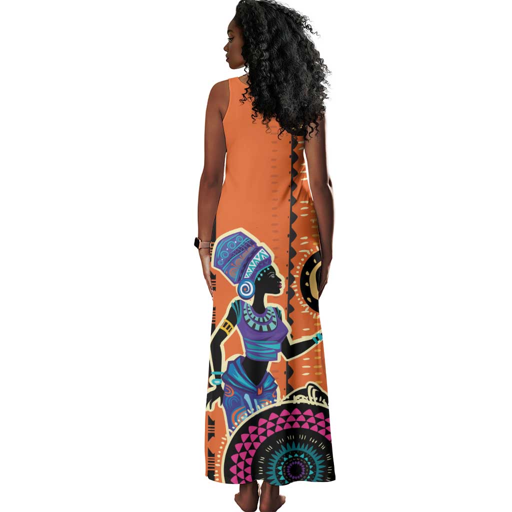 African Woman In Ethnic Dress Tank Maxi Dress Ethnic Geometric Patterns LT18