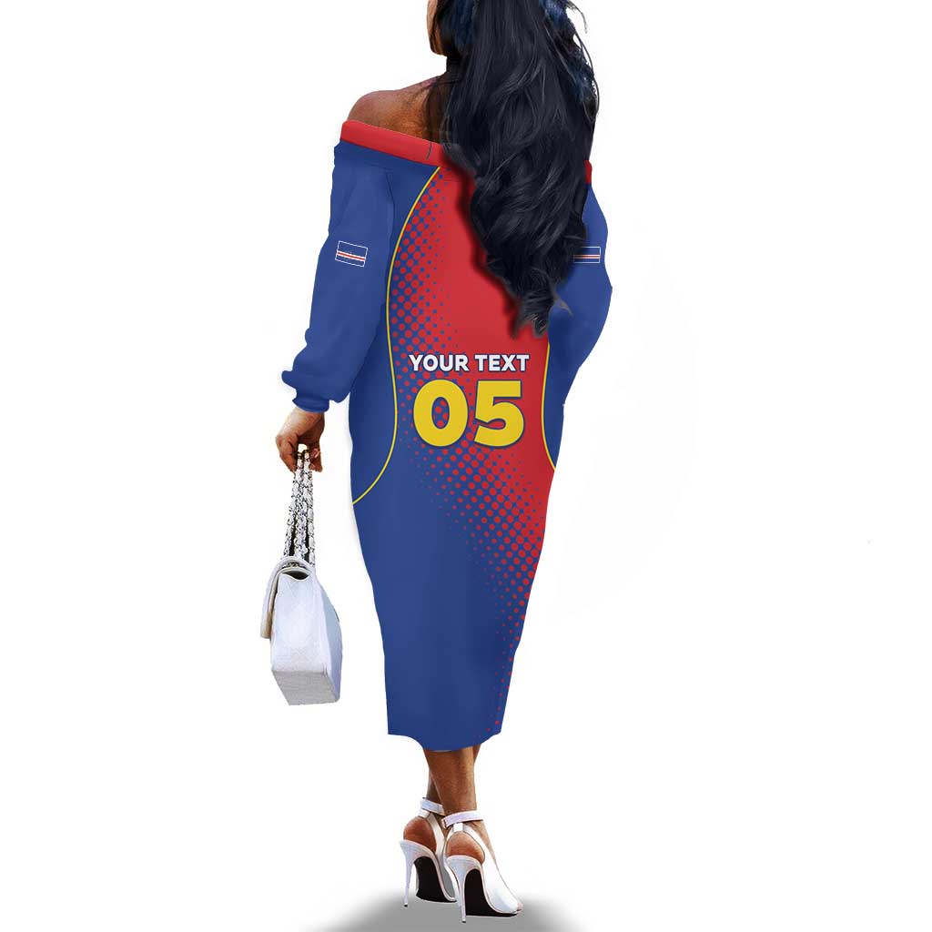 Custom Cape Verde Football Off The Shoulder Long Sleeve Dress Blue Sharks Make History
