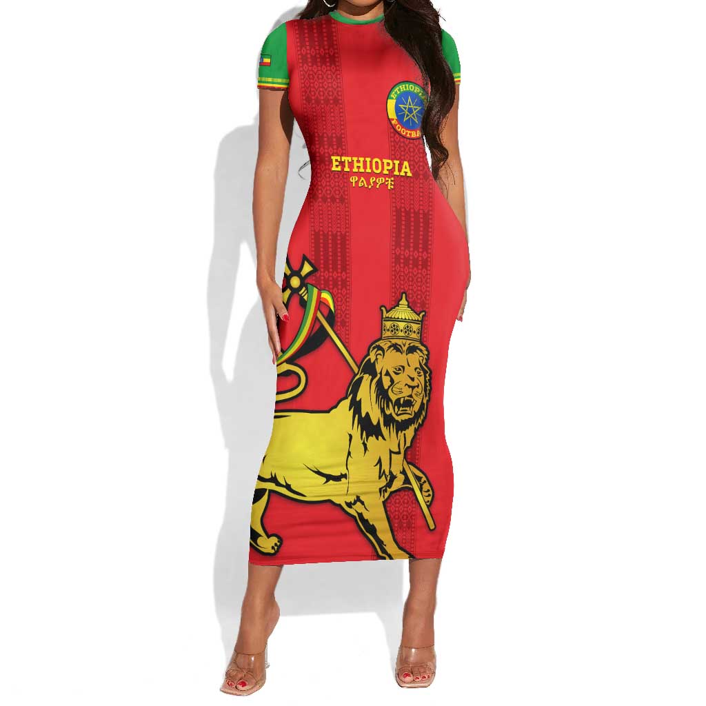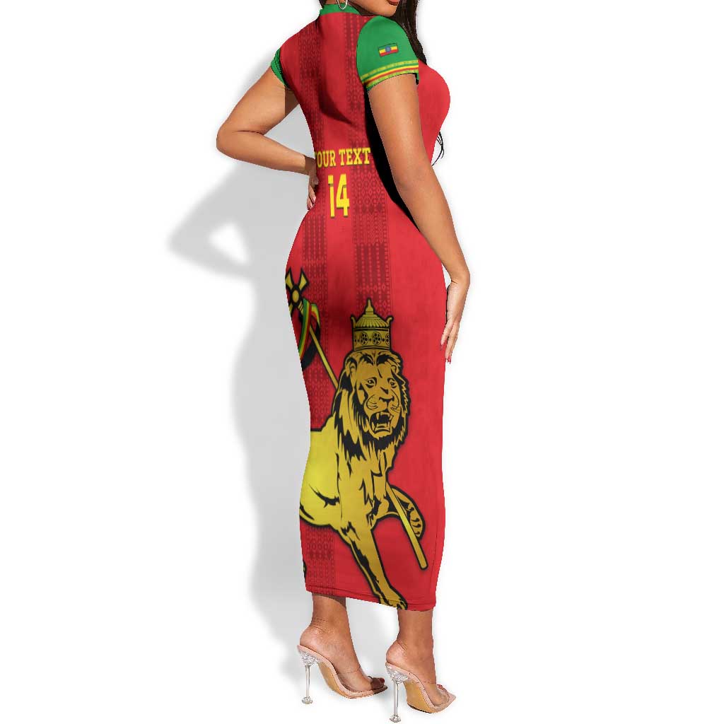 Custom Ethiopia Football Short Sleeve Bodycon Dress 2024 Go Champions Walia Ibex
