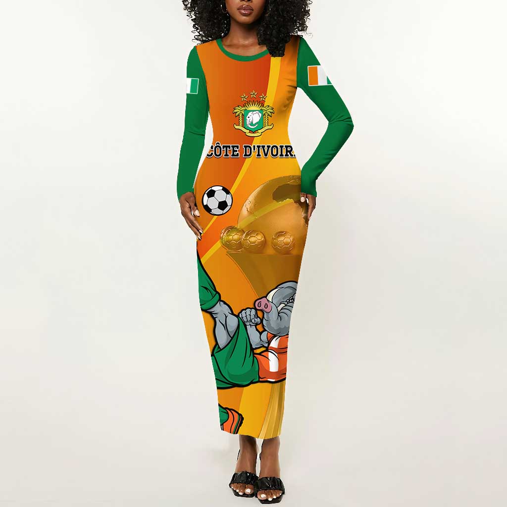Custom Ivory Coast Football Long Sleeve Bodycon Dress 2024 Mascot With Champions Trophy