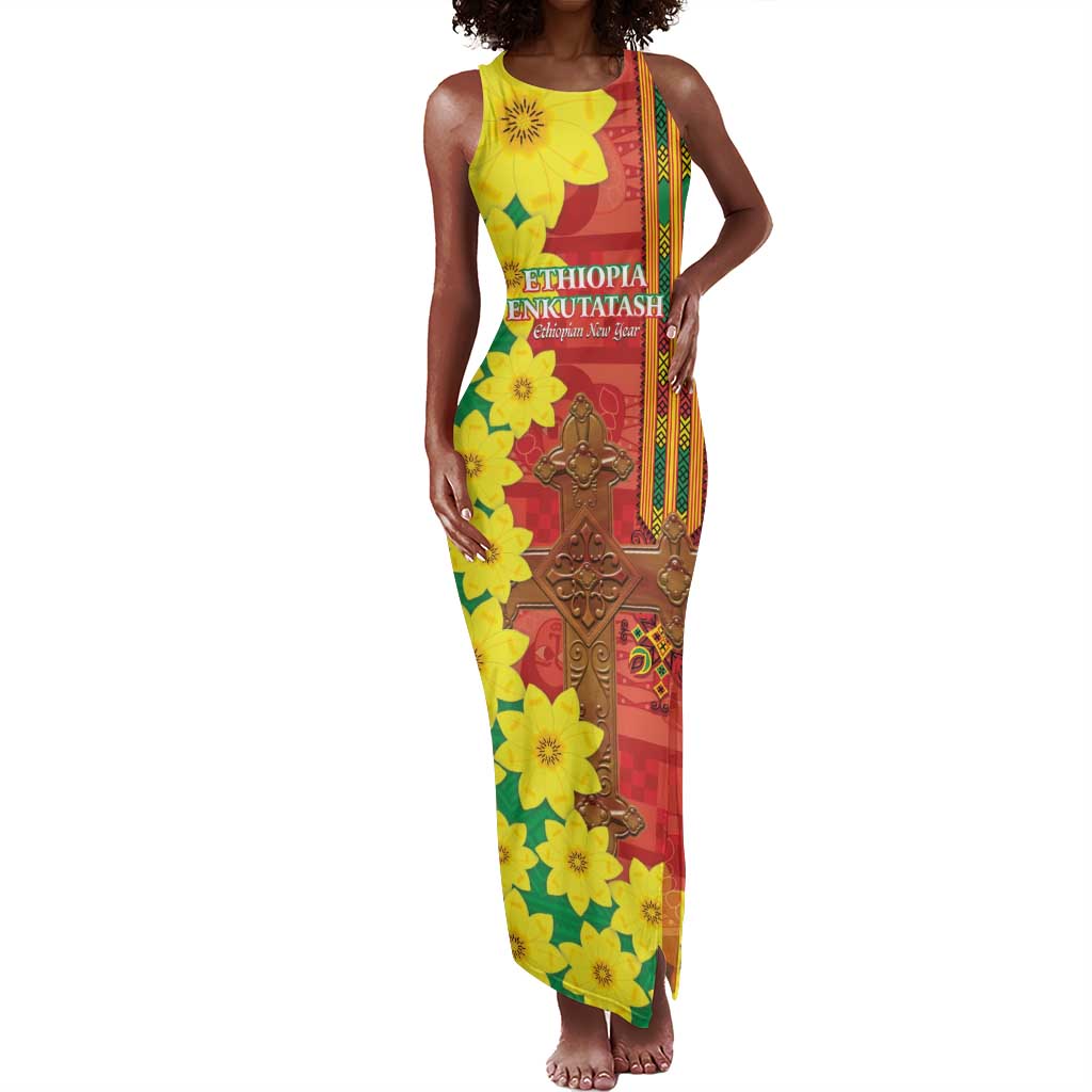 Enkutatash Ethiopia Tank Maxi Dress Melkam Addis Amet Adey Abeba Flower