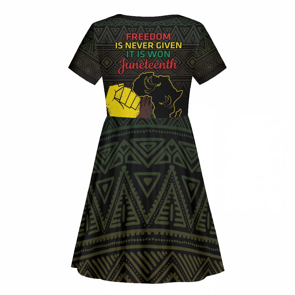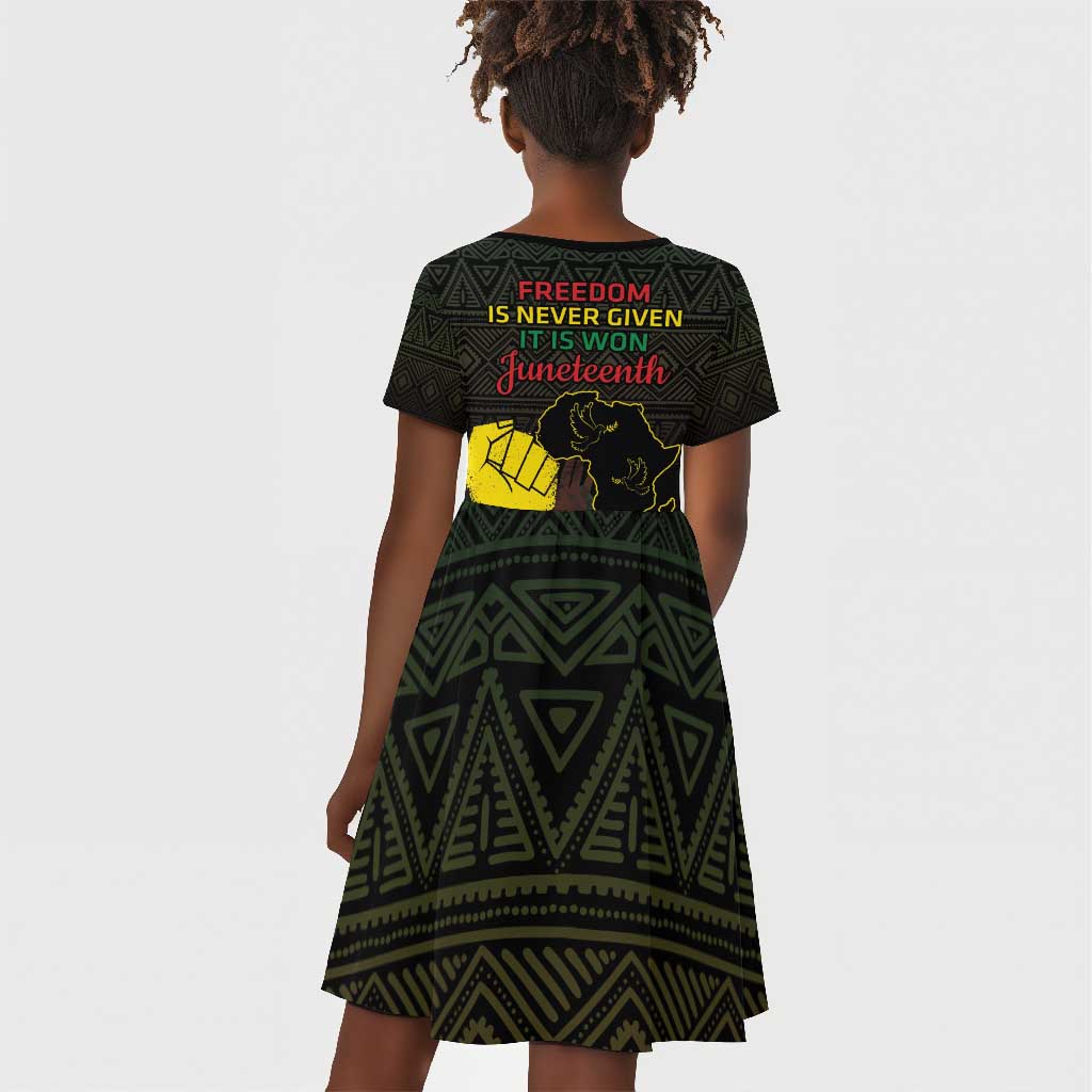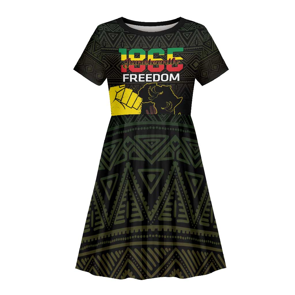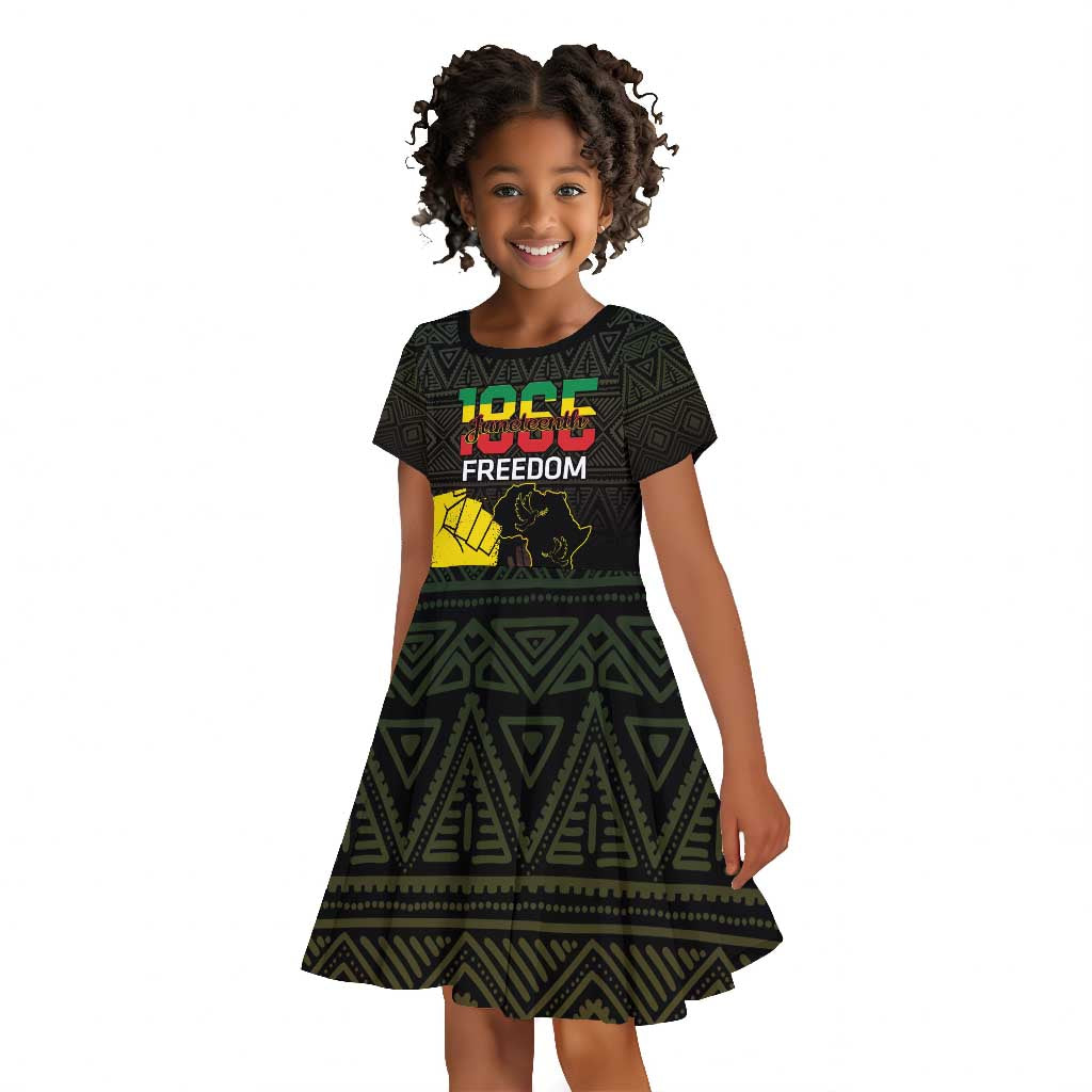 Juneteenth Freedom Day Kid Short Sleeve Dress 1865 Black Independence African Pattern