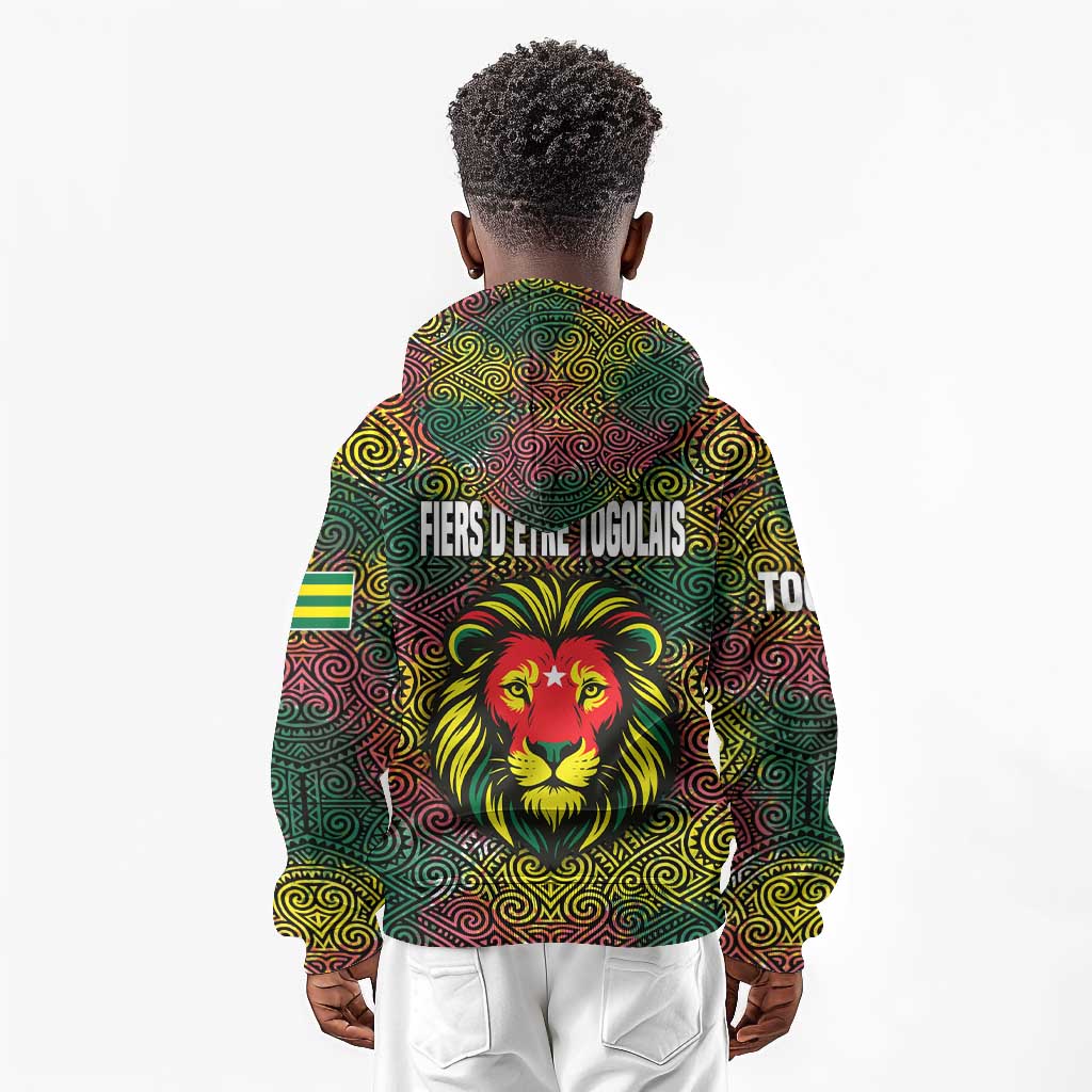 Togo Kid Hoodie Red Lion Head Design and Traditional African Pattern