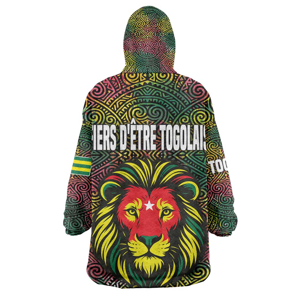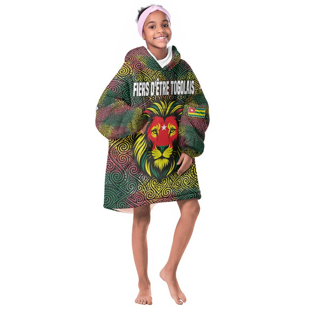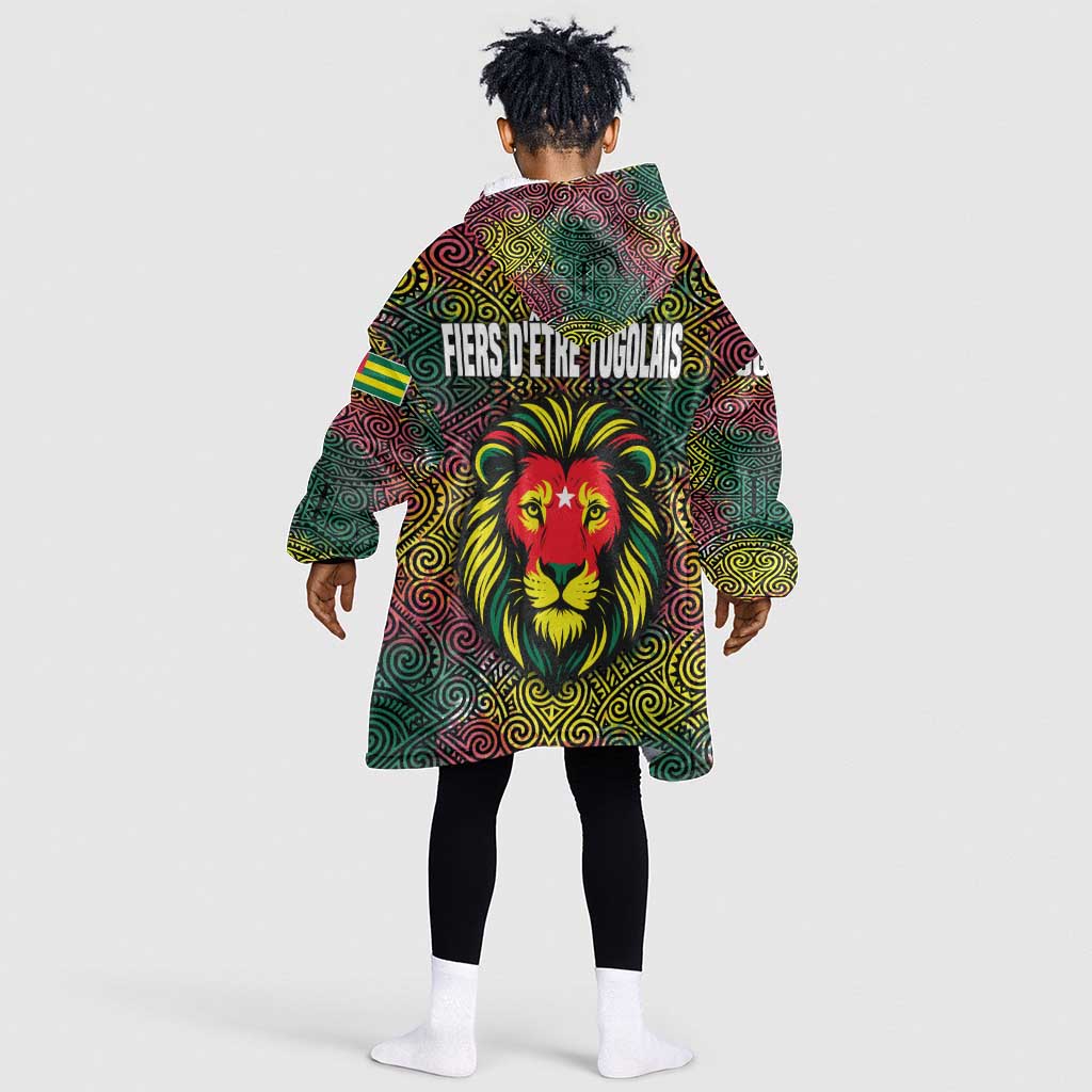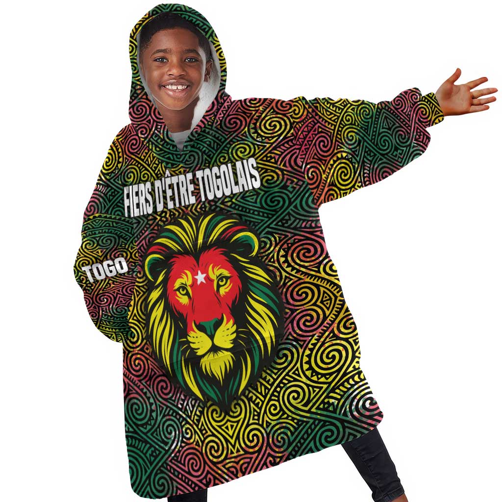 Togo Kid Wearable Blanket Hoodie Red Lion Head Design and Traditional African Pattern