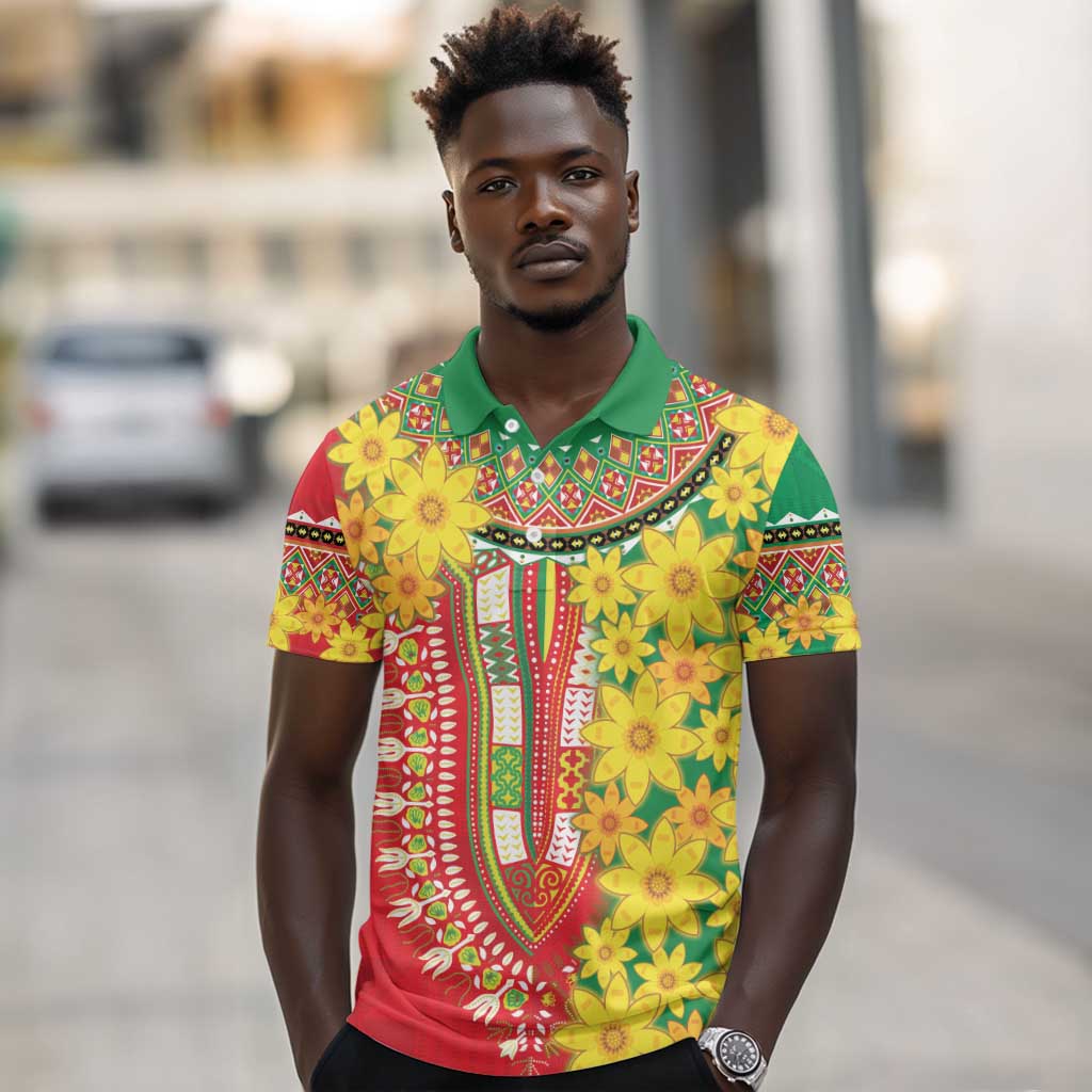 Afro Ethiopian New Year Polo Shirt Enkutatash Adey Abeba Flower Art