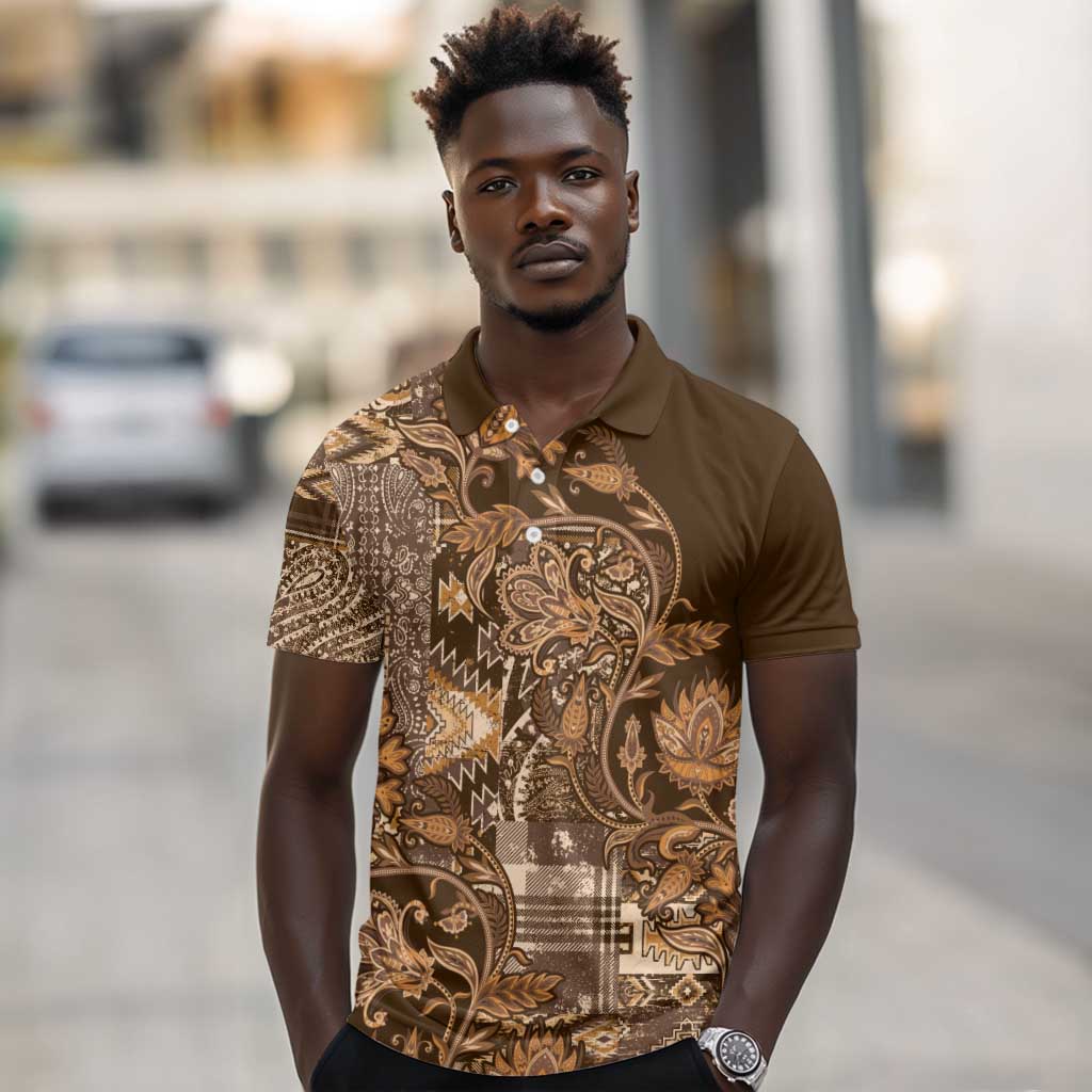 Afro Floral mix Maasai Shuka Polo Shirt Gold Moitf
