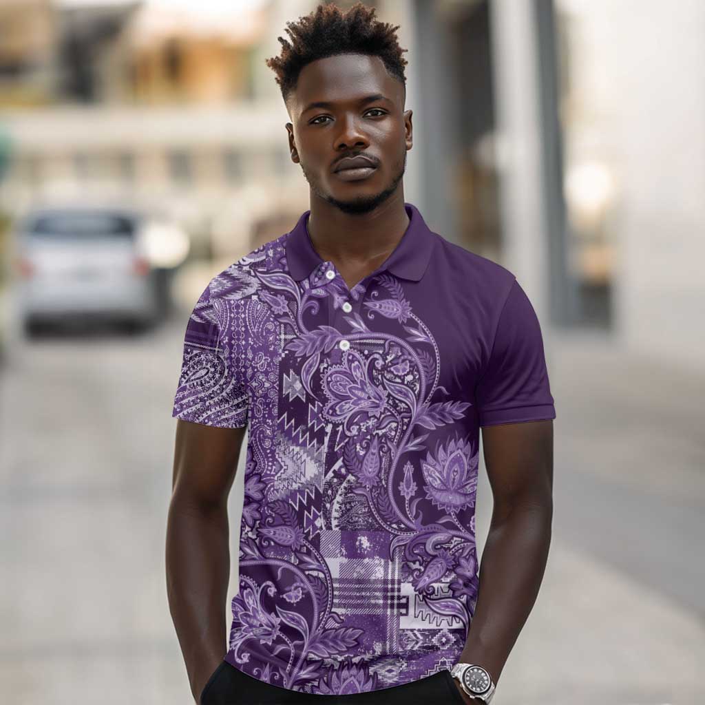 Afro Floral mix Maasai Shuka Polo Shirt Purple Moitf