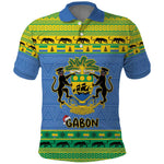 Afro Gabon Christmas Polo Shirt Coat Of Arms Mix African Pattern