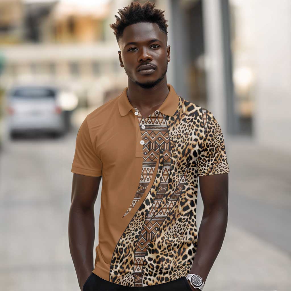 Afro Leopard Mix Native Tribal Pattern Polo Shirt