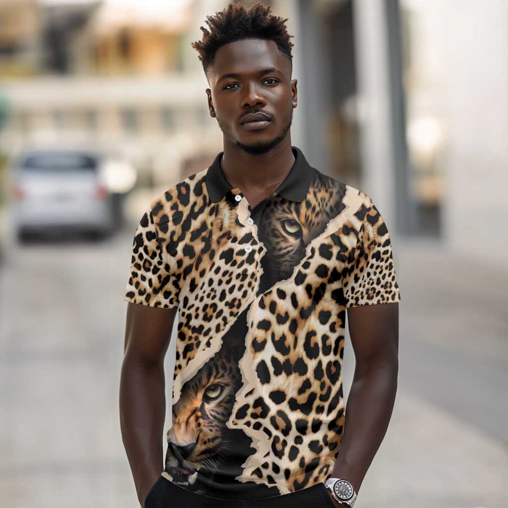 Afro Leopard Skin Pattern Polo Shirt Version 02