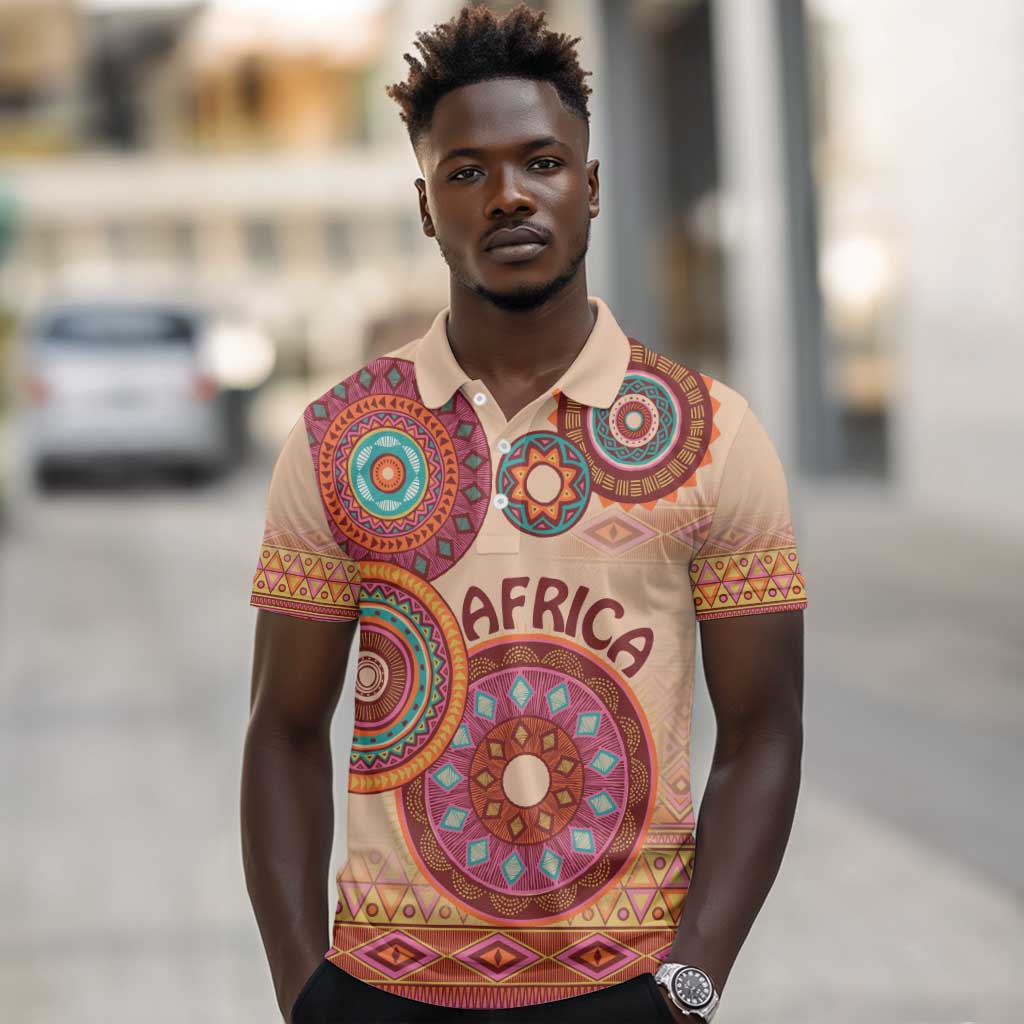 Afro Tribal Traditional Pattern Polo Shirt Beige Motif