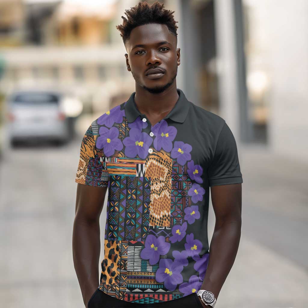 Afro Violets Flowers Polo Shirt Mix Native Tribal Pattern
