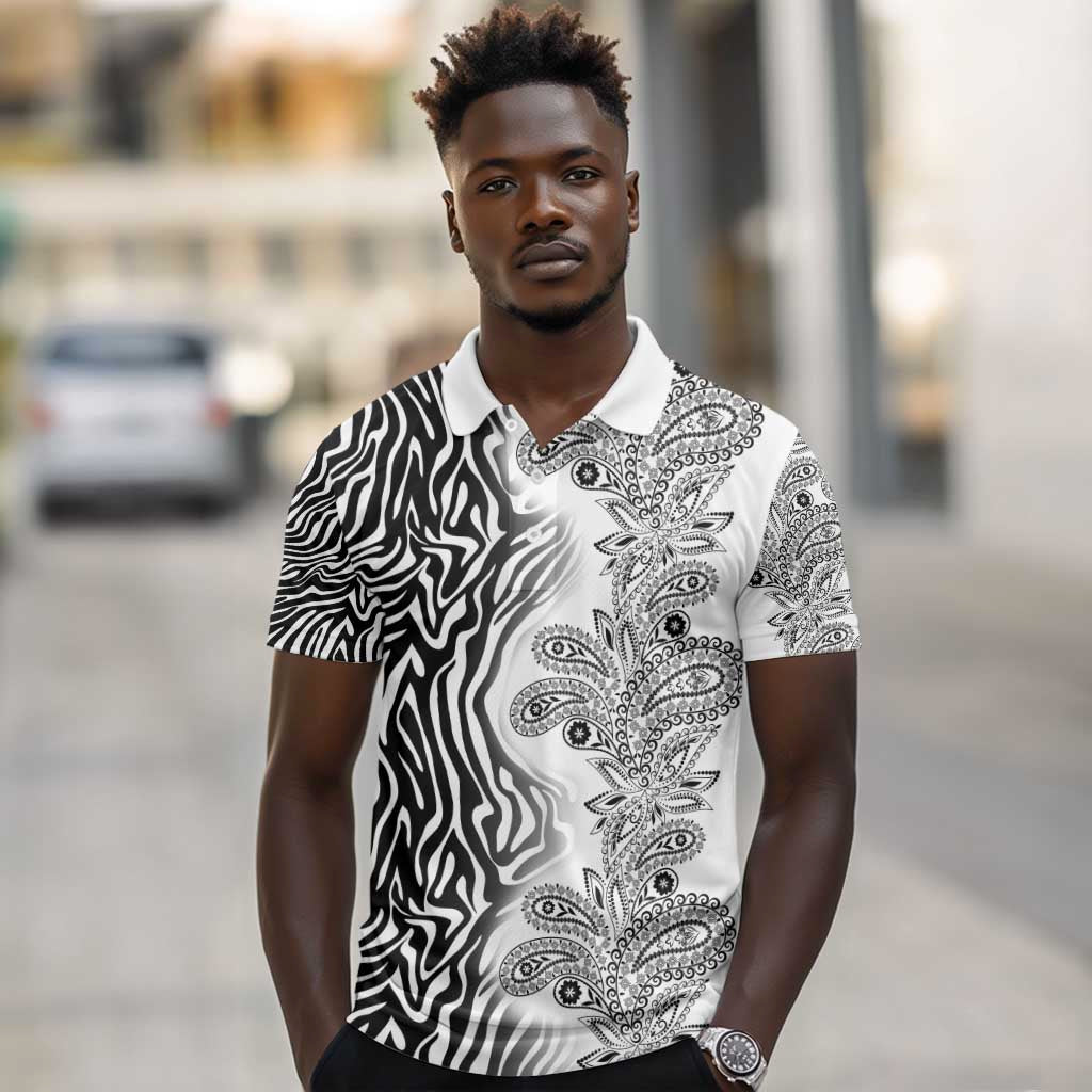 Afro Zebra Mix Paisley Tribal Pattern Polo Shirt