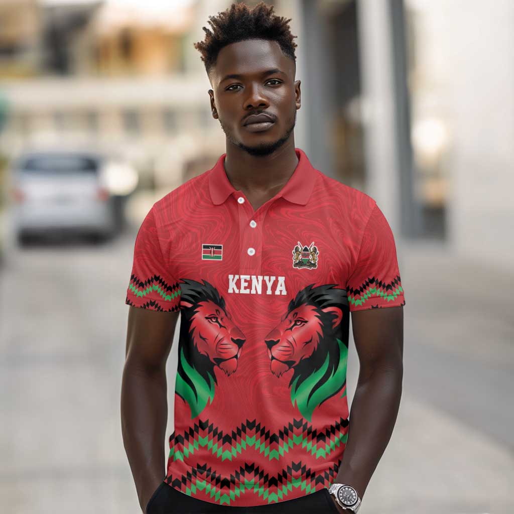 Custom Cricket Africa Kenya Polo Shirt Red Lion Head with Kenyan Pattern