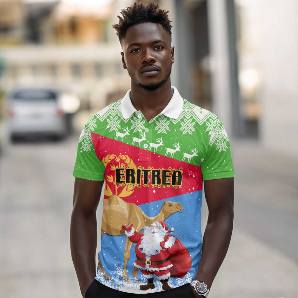 Custom Eritrea Christmas Polo Shirt with Santa Claus and Dromedary Camel