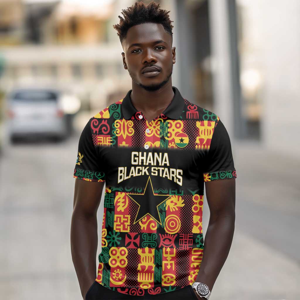 Custom Ghana Black Stars Polo Shirt Adinkra Pattern - Football Style