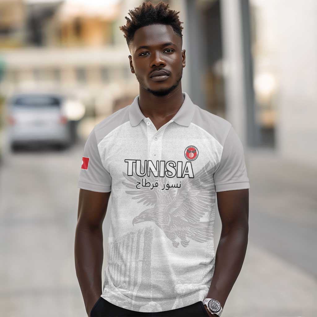 Custom Tunisia Football Polo Shirt Eagles of Carthage Go Champion - White Color
