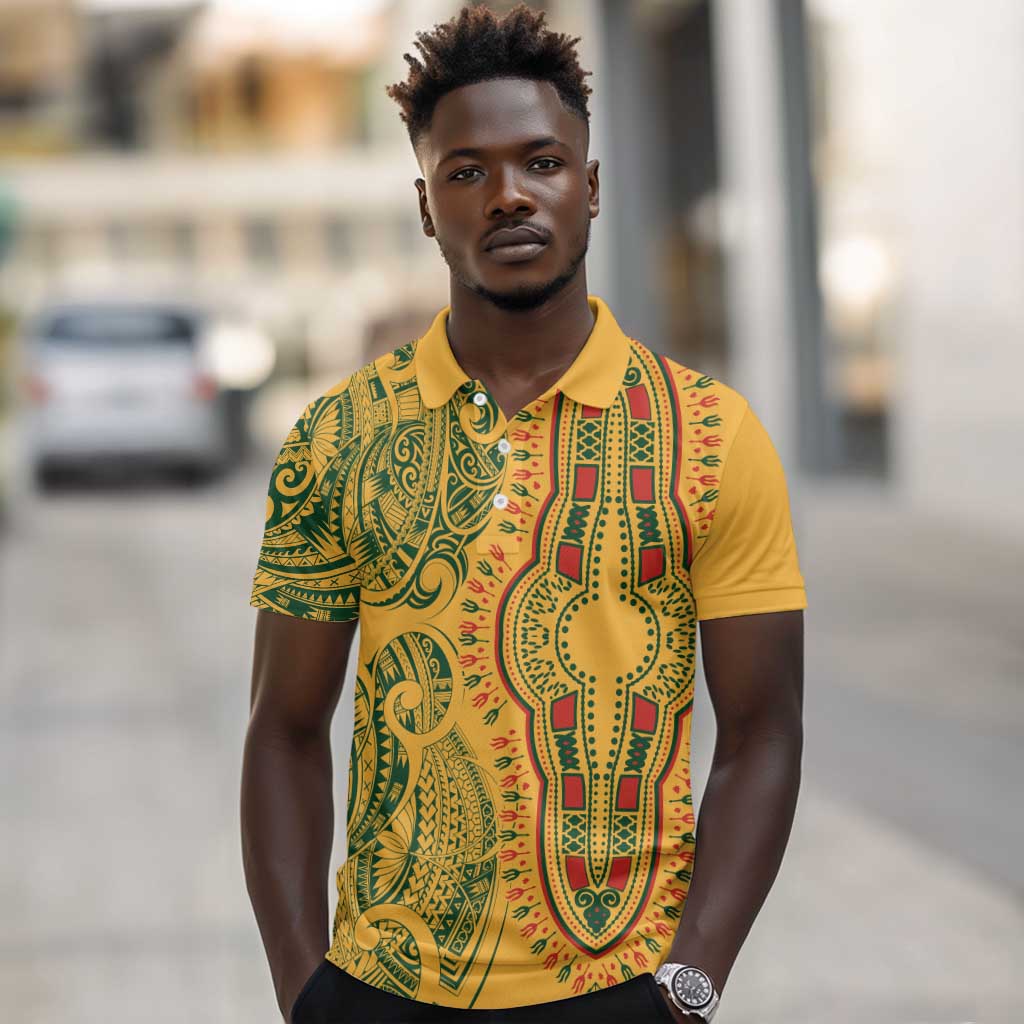 Dashiki and Polynesian Pattern Polo Shirt Afro Pacific Culture Gold Version