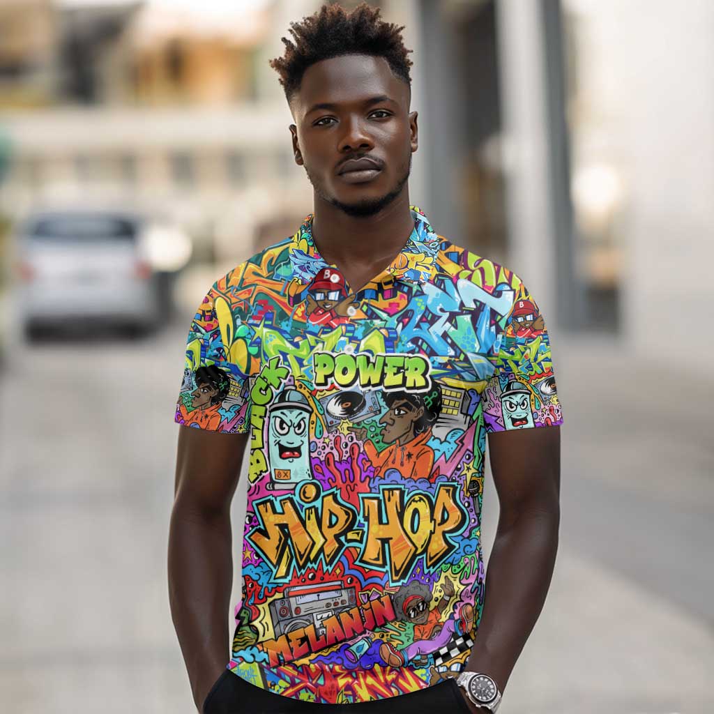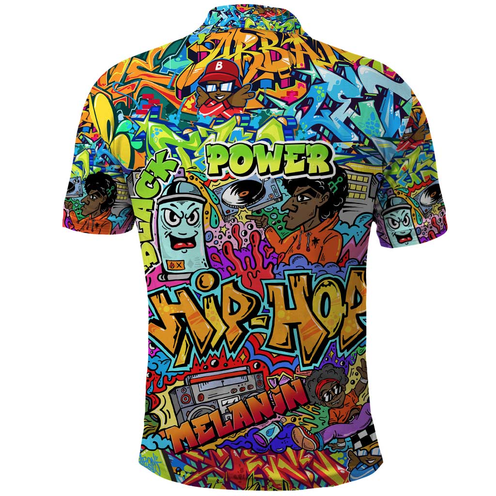 Hip Hop Graffiti Art Polo Shirt Black Power